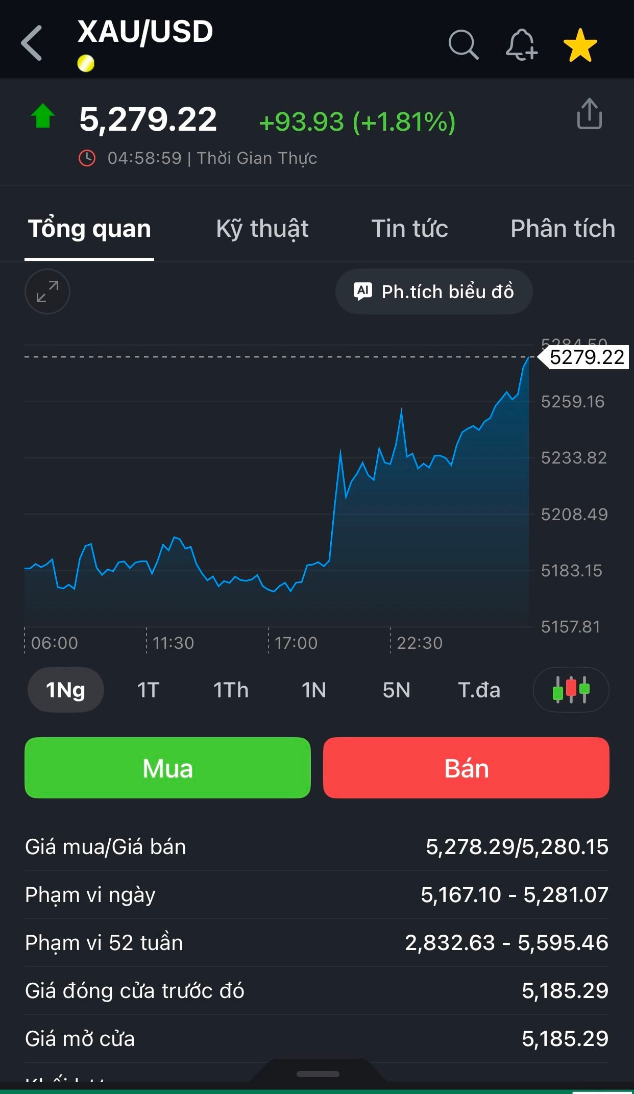 Có thời điểm trong phiên, kim loại quý này đã chạm ngưỡng 5.281 USD, mức cao nhất trong vòng một tháng trở lại đây. Như vậy, chỉ riêng trong tháng 2, vàng đã ghi nhận mức tăng trưởng ấn tượng khoảng 7,6%.