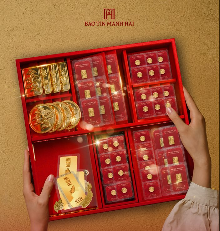 Ghi nhận tại Bảo Tín Mạnh Hải, sản phẩm nhẫn tròn trơn Kim Gia Bảo cũng ghi nhận sức cầu đột biến, đẩy giá niêm yết lên mức 177,6 triệu đồng/lượng mua vào và 180,6 triệu đồng/lượng bán ra, bám sát giá vàng miếng.