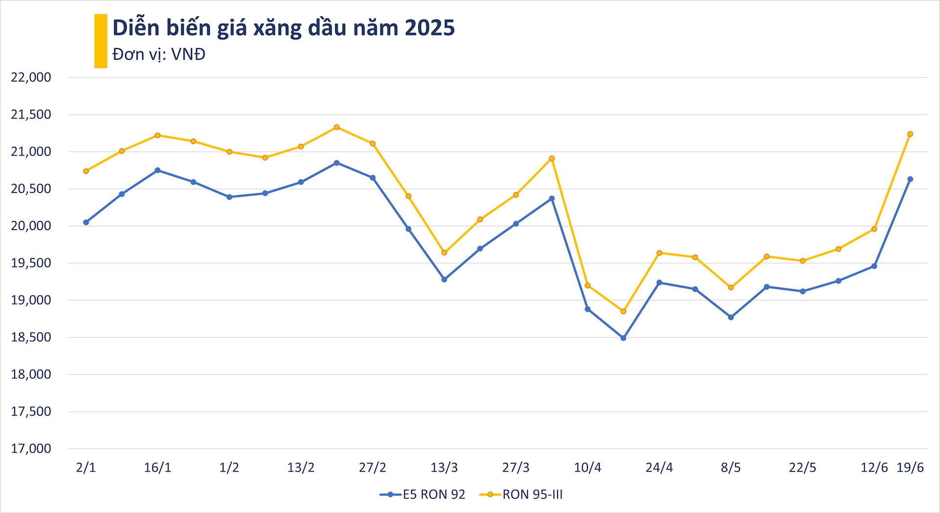 Tại kỳ điều chỉnh hôm nay (19/6), giá xăng tăng 1.170-1.280 đồng/lít.