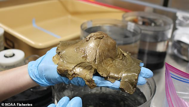 Sau khi được đưa lên tàu nghiên cứu Okeanos Explorer, các phân tích ban đầu chỉ xác định đây là vật thể có nguồn gốc sinh học.