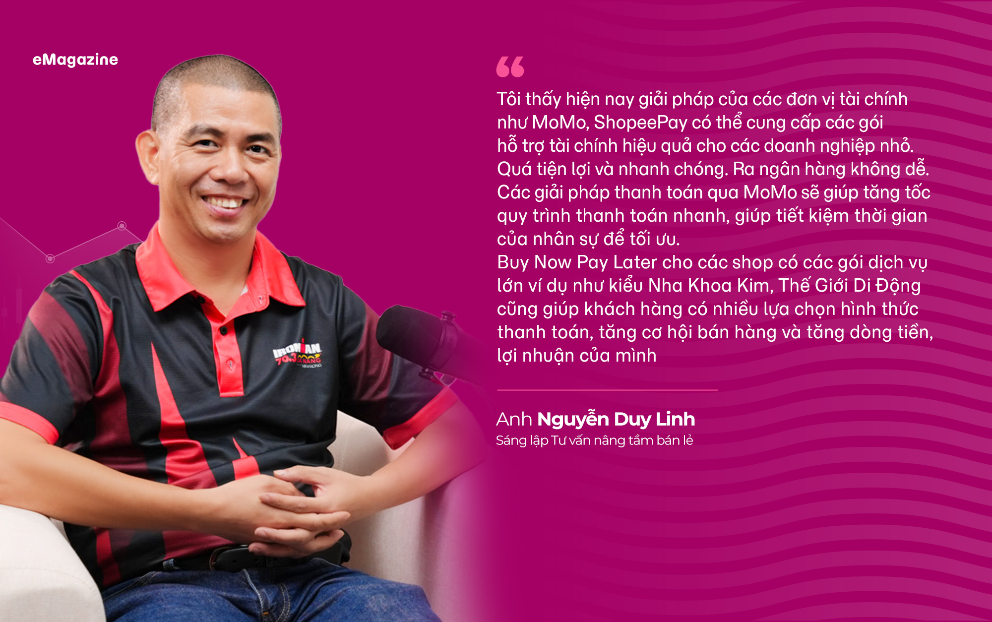 Chia sẻ thêm về giải pháp cho "Khoảng trống vốn" mỗi khi doanh nghiệp cần tiền gấp, ông Nguyễn Duy Linh nhắc đến MoMo.