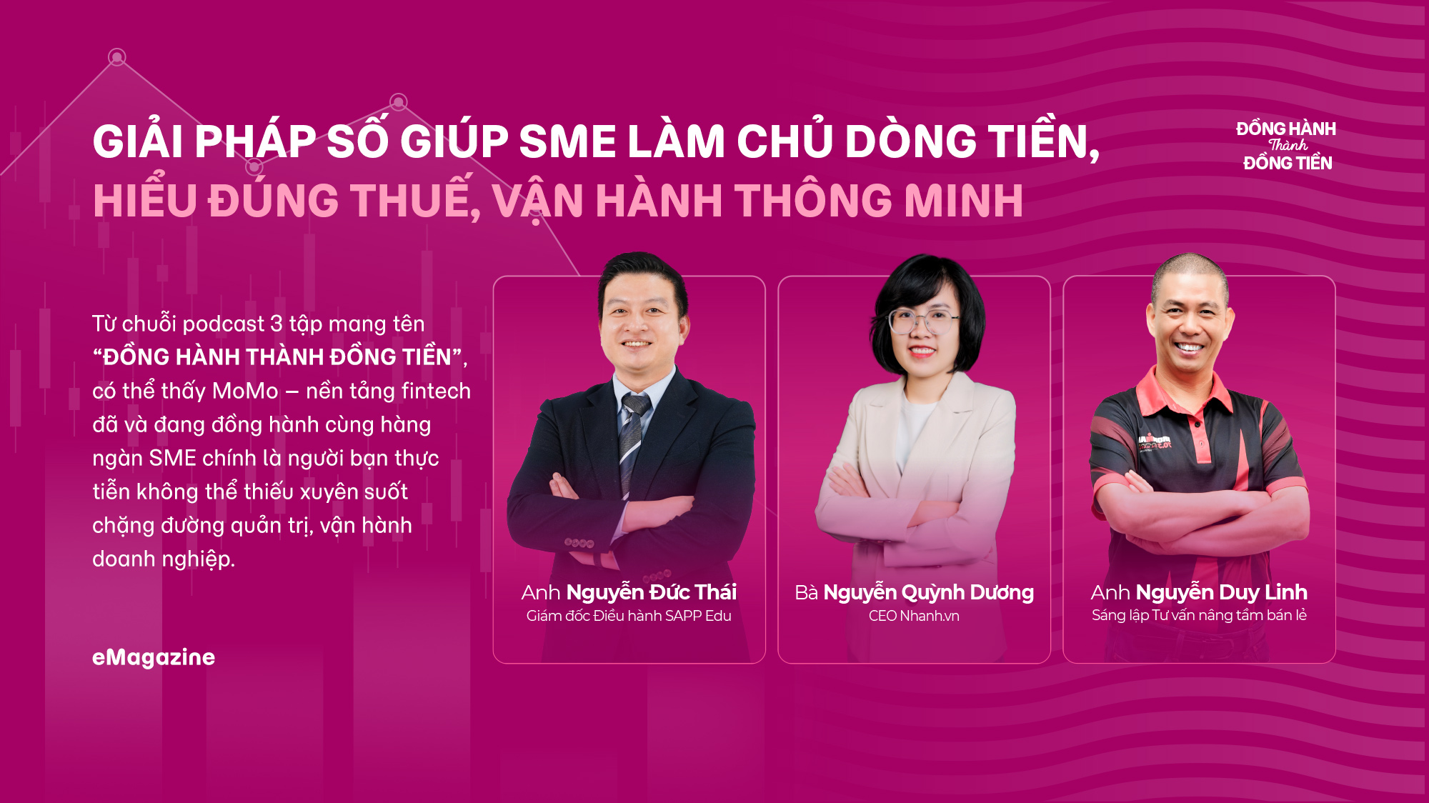 Từ chuỗi podcast 3 tập mang tên "ĐỒNG HÀNH THÀNH ĐỒNG TIỀN", với sự tham gia của các khách mời đặc biệt là ông Nguyễn Đức Thái - Giám đốc điều hành SAPP Edu, bà Nguyễn Quỳnh Dương - Co-Founder & CEO Nhanh.vn và ông Nguyễn Duy Linh - Sáng lập Tư vấn Nâng Tầm Bán Lẻ, có thể thấy đã đến lúc doanh nghiệp vừa và nhỏ cần làm chủ dòng tiền, hiểu đúng thuế và vận hành thông minh hơn thông qua các giải pháp số hữu hiệu. MoMo – nền tảng fintech đã và đang đồng hành cùng hàng ngàn SME được cho là người bạn thực tiễn không thể thiếu xuyên suốt chặng đường này. Bởi lẽ, chỉ khi dòng vốn được hiểu đúng và quản trị tốt, đồng tiền mới thực sự trở thành người đồng hành của doanh nghiệp trên hành trình dài hạn.