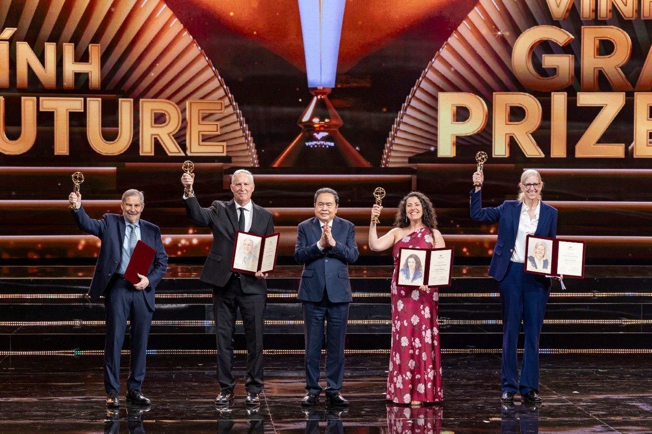 Giải thưởng Chính VinFuture 2025 vinh danh 4 nhà khoa học vì những khám phá và phát triển vắc-xin HPV nhằm phòng ngừa các khối u do virus papilloma gây ra ở người. Ảnh: VFP