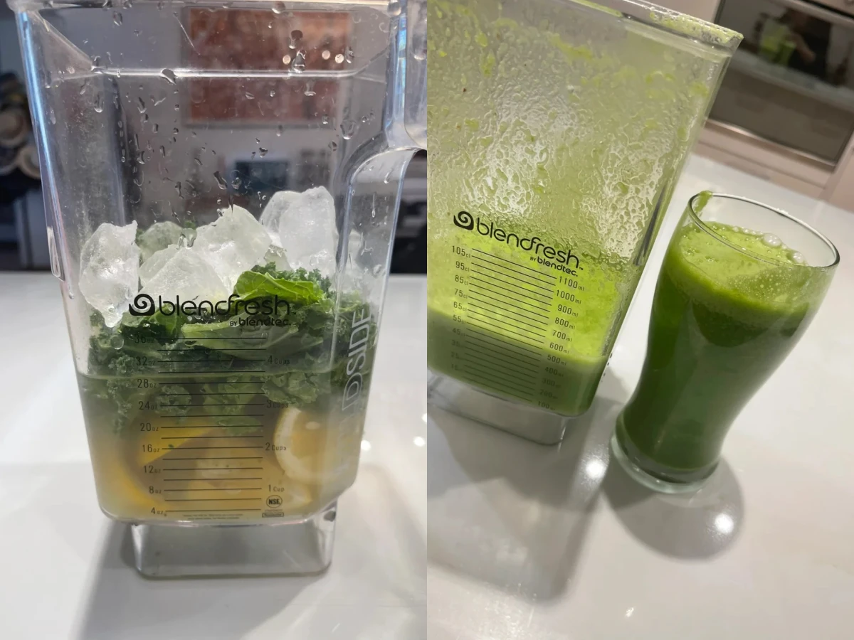 Loại thứ hai là "nước vàng" gồm chanh đã gọt vỏ, bột điện giải, một ít chất tạo ngọt thay thế, giấm táo và nước. Công thức này giúp bổ sung nước, hỗ trợ tiêu hóa và kiểm soát cảm giác thèm ăn. Nhờ hai loại đồ uống này, cô thường không thấy đói cho đến tận chiều muộn.