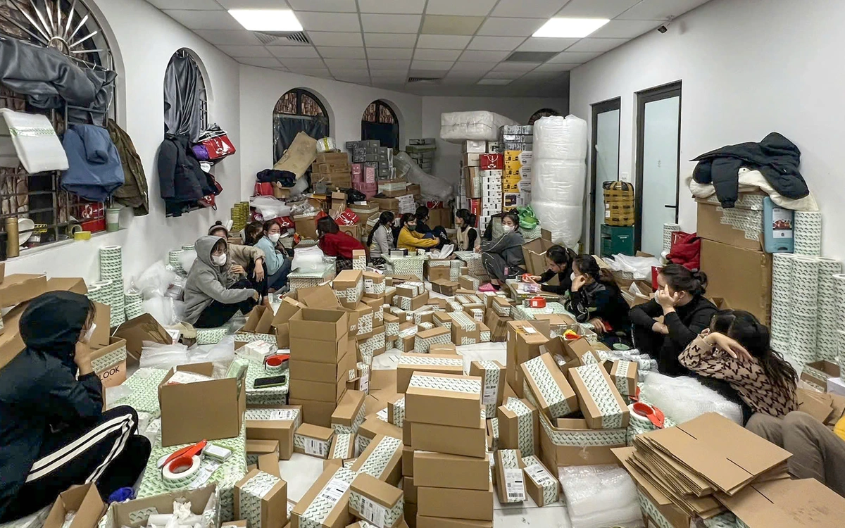 Lực lượng chức năng kiểm tra kho hàng của TikToker Mailystyle.com.