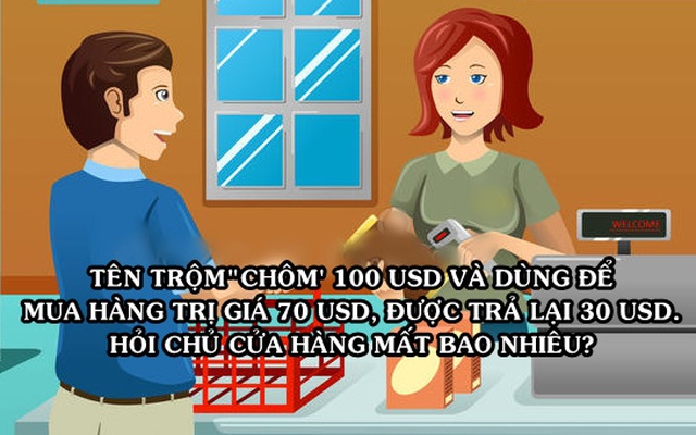 [Góc giải đố] Tên trộm ăn cắp 100 USD rồi dùng nó để mua số hàng 70 USD và được trả lại 30 USD, hỏi chủ cửa hàng tổn thất bao nhiêu?