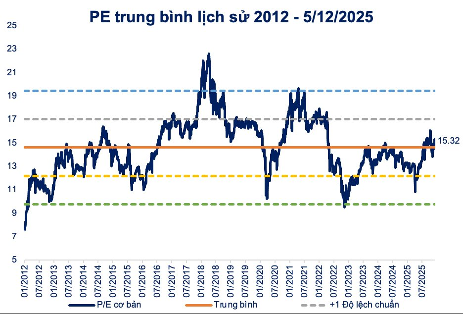 Ông Huy chỉ ra có ba nguyên nhân chính khiến thanh khoản chưa bùng nổ tương xứng với nhịp tăng điểm của chỉ số. Thứ nhất, VN-Index hiện đang tiến sát vùng đỉnh cũ, định giá không còn thực sự rẻ. P/E trailing của thị trường đã lên quanh 16–17 lần, cao hơn mặt bằng một số thị trường khu vực và cao hơn trung bình lịch sử gần đây, trong khi tăng trưởng lợi nhuận 2025–2026 dù được kỳ vọng phục hồi nhưng vẫn đi kèm không ít ẩn số.