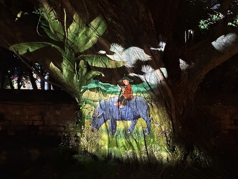 Cùng với Bảo tàng Phụ nữ, Văn Miếu - Quốc Tử Giám cũng vừa tổ chức buổi công chiếu đầu tiên vào tối 29/10. Điểm khác biệt so với các tour đêm trước là thay vì dùng hình thức sân khấu hóa thì ở đây sử dụng công nghệ và ánh sáng.