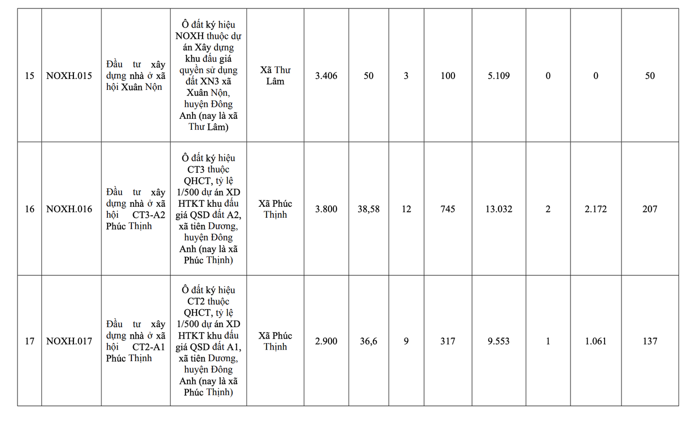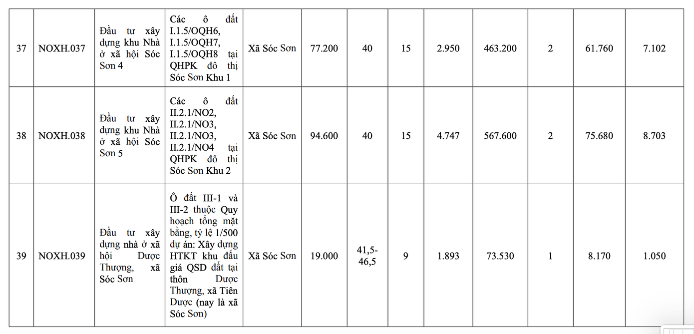 Danh sách 39 dự án được xác định đầu tư xây dựng nhà ở xã hội trên địa bàn thành phố (đợt 1):