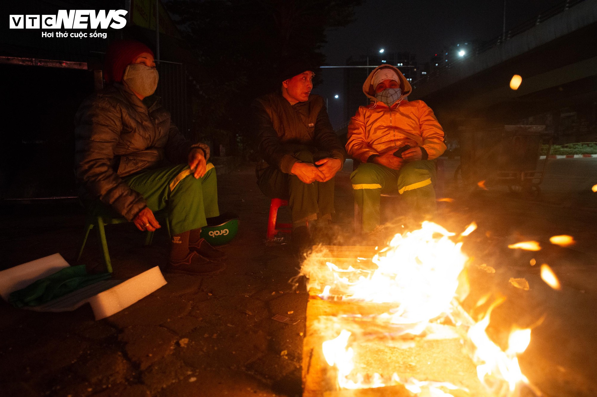 Dưới trời mưa rét quanh ngưỡng 12ºC , những công nhân vệ sinh môi trường vẫn miệt mài quét dọn các tuyến đường ở Hà Nội. Chị Nguyễn Thị Hồng (52 tuổi, công nhân vệ sinh môi trường) cho biết, những đêm mưa rét là thời điểm công việc trở nên vất vả hơn. “Trời lạnh buốt, mưa phùn bám vào người rất khó chịu. Chúng tôi phải đốt tạm đống lửa nhỏ để sưởi ấm, có thêm sức làm việc. Dù rét nhưng vẫn phải hoàn thành công việc cho kịp sáng hôm sau”, chị Hồng nói.