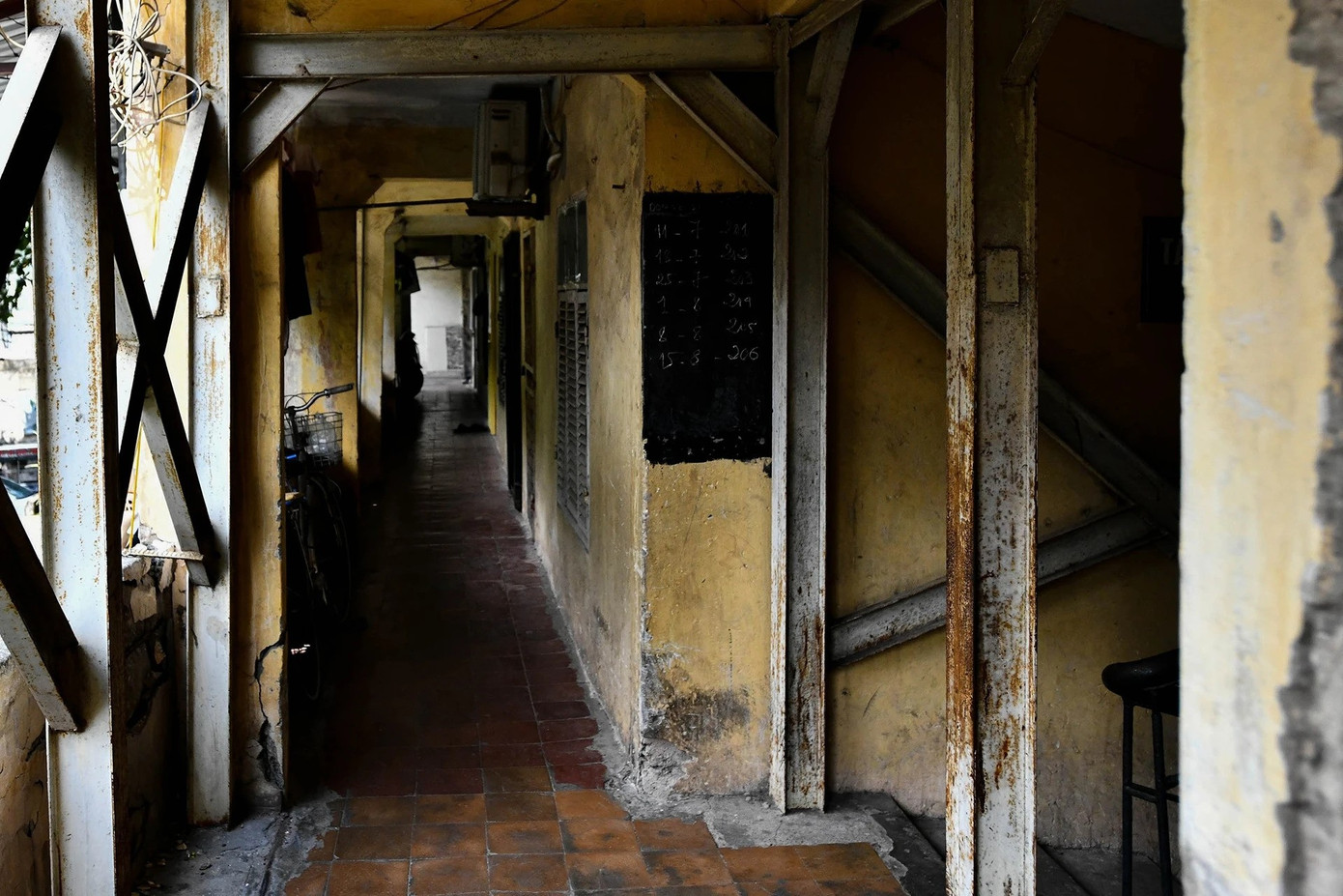 Tuy nhiên, đến nay, hệ thống giàn giáo thép xuất hiện nhiều chỗ hoen gỉ tại những mối hàn, cong vênh. Toàn bộ kết cấu cầu thang từ tầng 1 đến tầng 5 đang dần bị nứt tách với khung chịu lực tòa nhà, các cấu kiện bê tông bị võng nứt. Do đó, người dân mong muốn thành phố sớm cải tạo để cư dân nhà tập thể an cư.