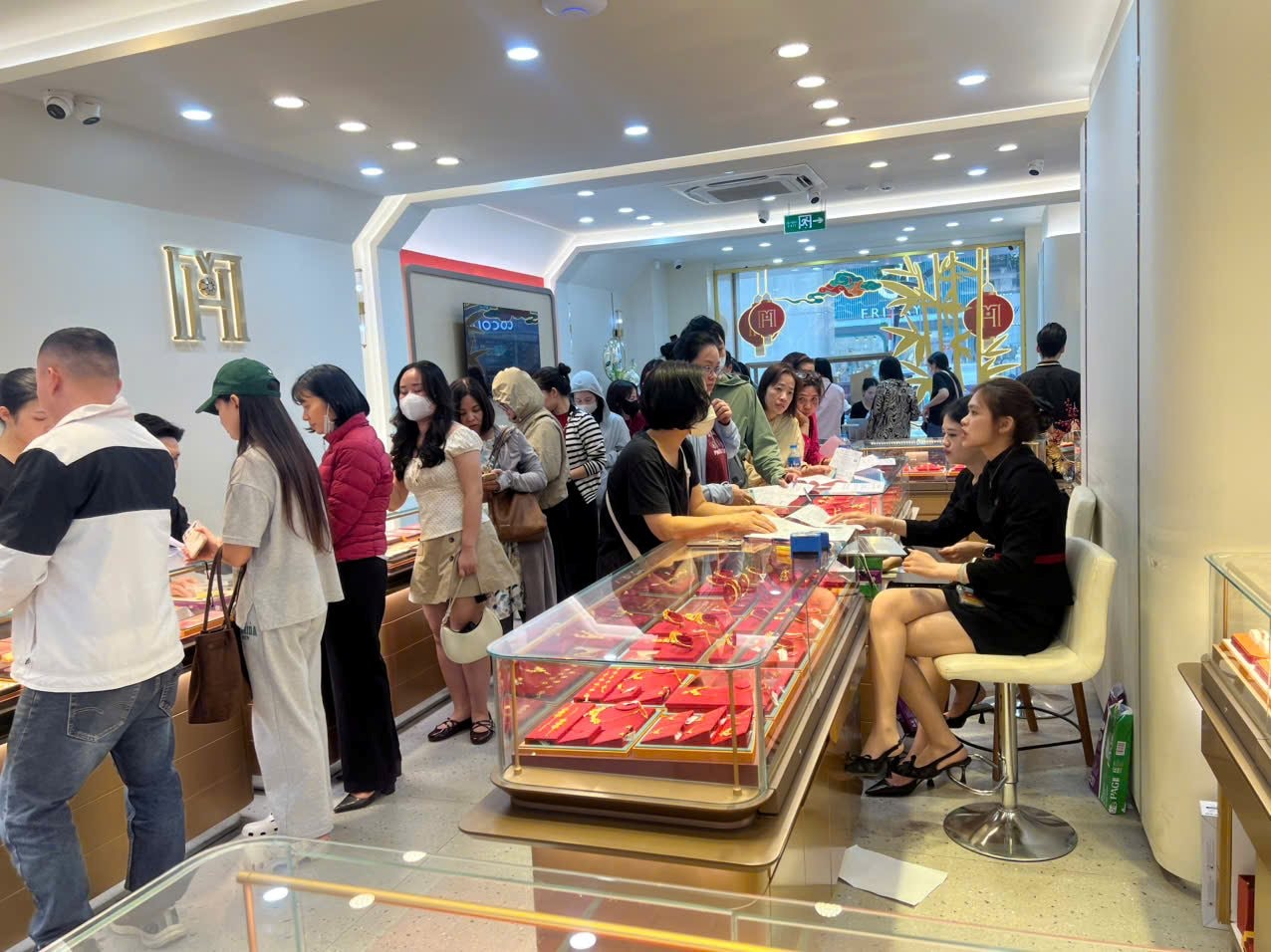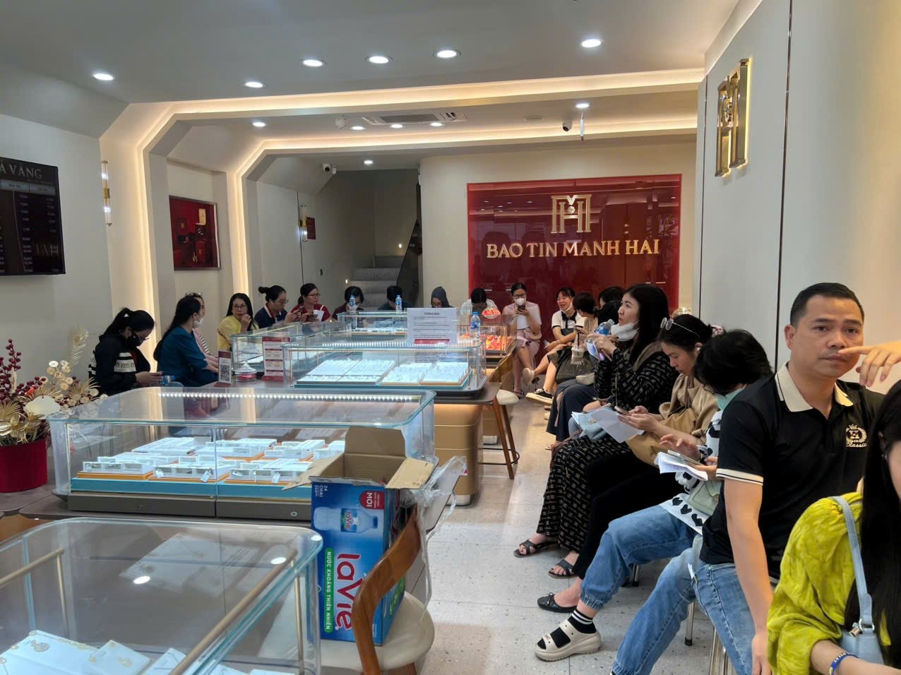 Hàng dài người chờ đến lượt lấy vàng đã mua trên giấy hẹn tại cửa hàng Bảo Tín Mạnh Hải