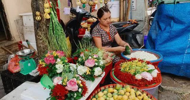 Những loài hoa truyền thống quen thuộc được bày bán trên gánh hoa bà Thu