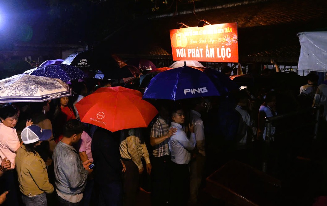 Người dân, du khách "đội mưa" xuyên đêm chờ xin ấn đền Trần