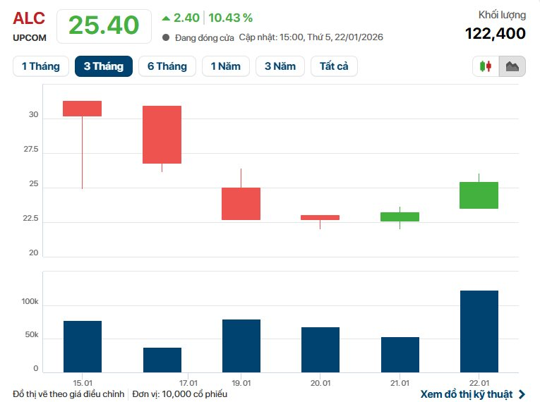Trên thị trường chứng khoán, cổ phiếu ALC ngày 22/1 giao dịch quanh vùng giá 25.400 đồng/cp, tăng hơn 10% so với phiên trước đó.