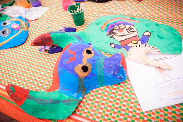 Trong khi đó, bé Ngọc Minh, 5 tuổi lại vui vẻ khoe rằng: "Đây là lần đầu tiên con được tự tay tô màu một chiếc mặt nạ bồi. Con cảm thấy rất hào hứng và muốn làm thêm nhiều chiếc mặt nạ khác để cùng bạn bè đón tết Trung thu".