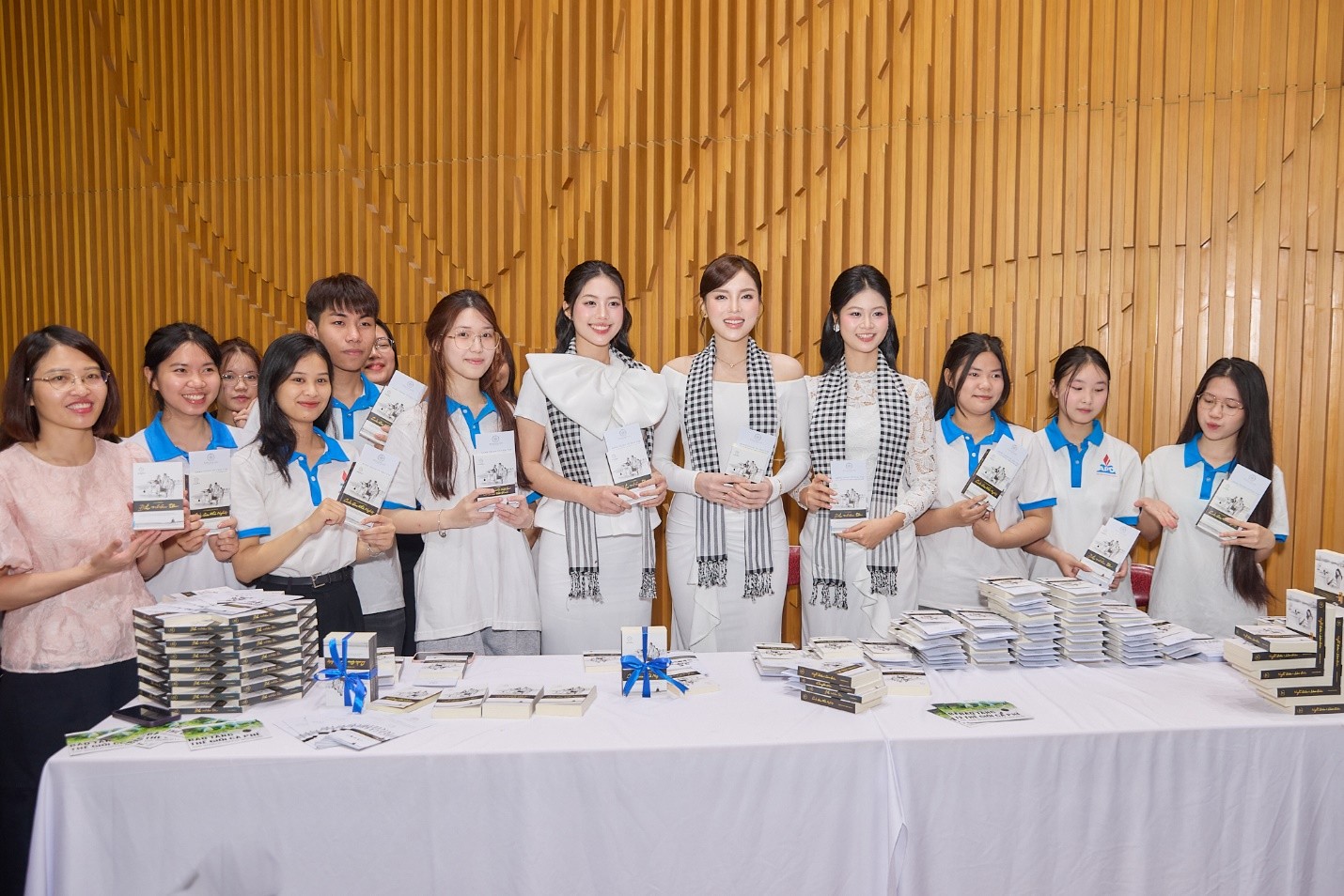 Các bạn trẻ sinh viên trân trọng đón nhận những cuốn sách do Hành trình trao tặng.
