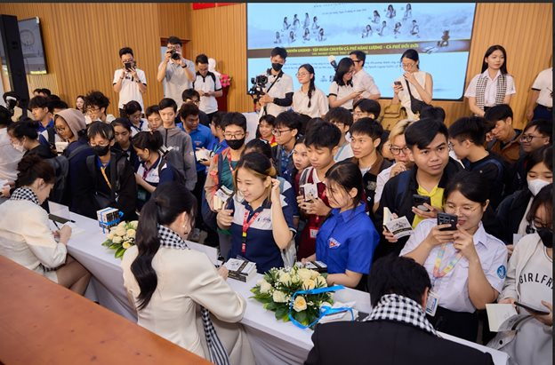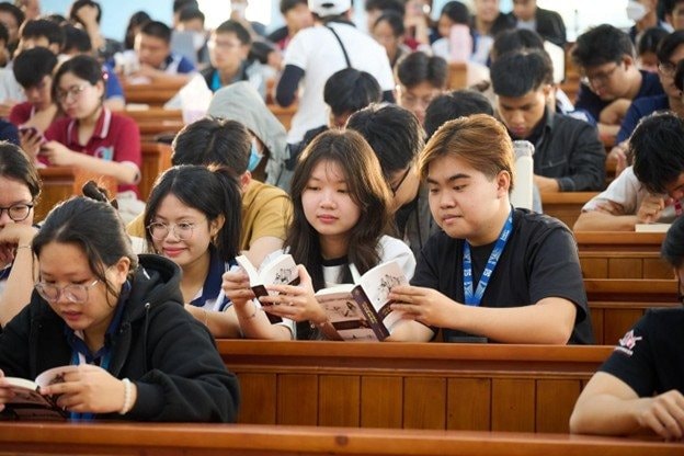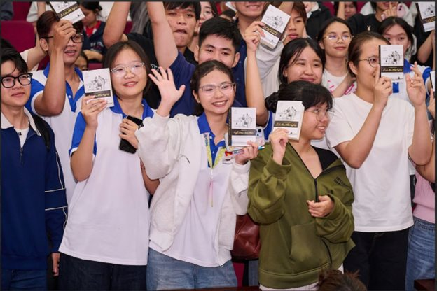 Đặc biệt, 5 đầu sách nền tảng gồm “Quốc gia khởi nghiệp”, “Đắc nhân tâm”, “Nghĩ giàu làm giàu”, “Không bao giờ là thất bại - Tất cả là thử thách” và “Khuyến học”, cùng các suất học bổng đã được trao tận tay nhiều sinh viên tiêu biểu. Tại các điểm trường, không khí trở nên sôi nổi với những hàng dài sinh viên chờ nhận sách, những cánh tay liên tục giơ lên trong phần giao lưu và những câu hỏi nối tiếp nhau xoay quanh định hướng học tập, phát triển bản thân và khởi nghiệp.