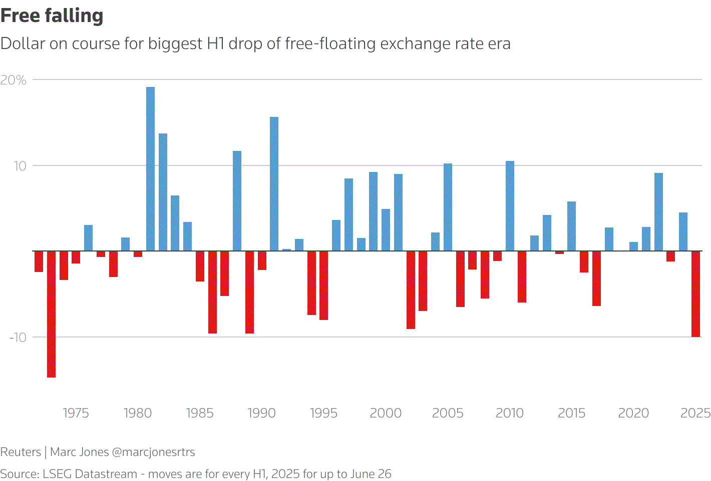 USD trong 6 tháng đầu năm 2025 giảm mạnh nhất kể từ đầu những năm 11970.