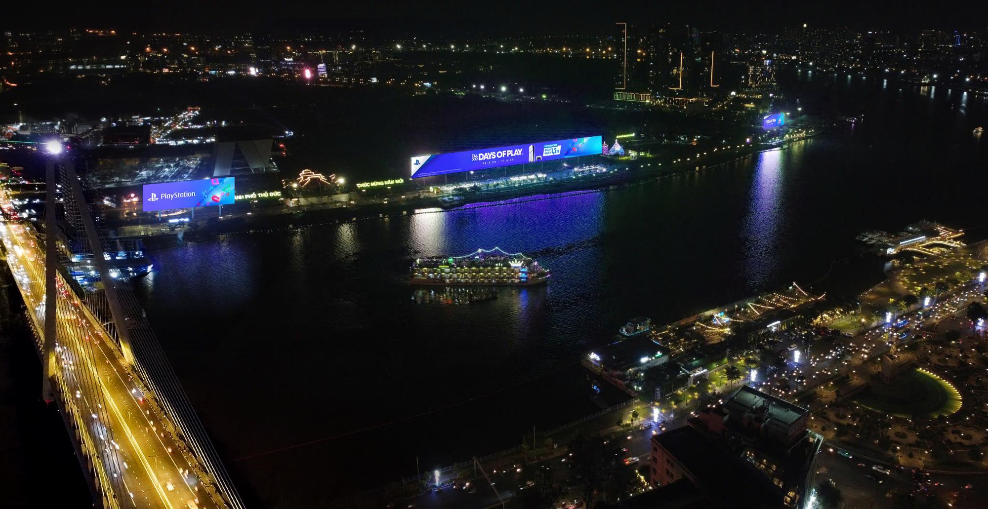 Bên cạnh SKYLED Hà Nội, hệ thống SKYLED Sài Gòn cũng đang được Bizman Media vận hành với quy mô tương tự bên bờ sông Sài Gòn tạo nên một mạng lưới hiển thị kỹ thuật số đồng bộ, góp phần định hình lớp hình ảnh đô thị hiện đại tại hai trung tâm kinh tế lớn nhất cả nước. (Ảnh: Bizman Media)