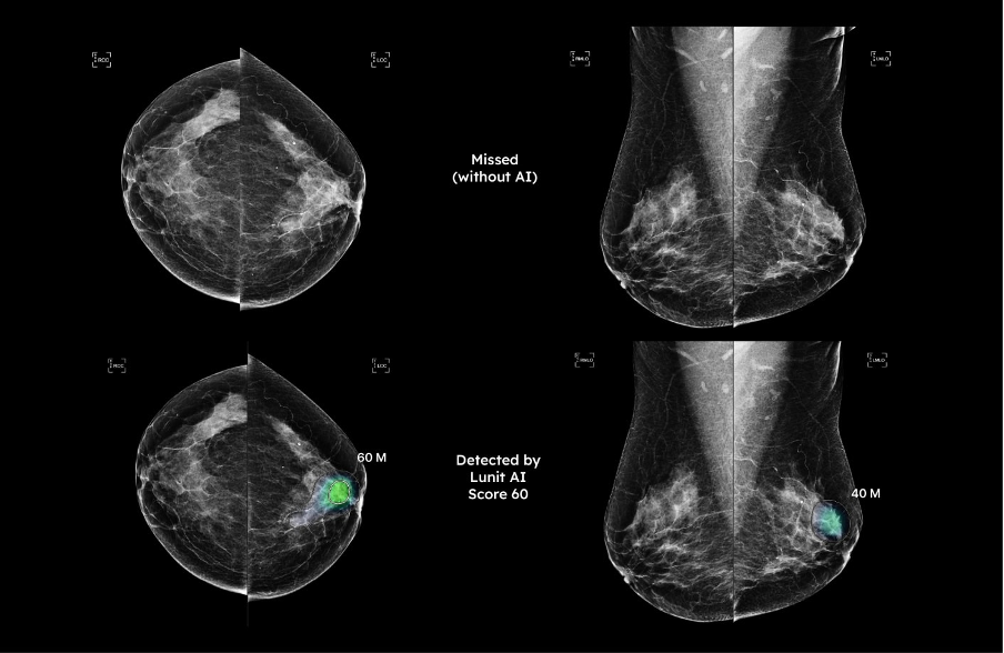 AI tầm soát ung thư vú ứng dụng trong quy trình chụp X-Quang tuyến vú, đã được FDA cấp phép lưu hành theo mã K211678 và đạt chứng nhận tiêu chuẩn châu Âu CE, có khả năng nhận diện chính xác lên đến 97% đối với các tổn thương có kích thước rất nhỏ (từ 2mm) mà mắt thường dễ bỏ sót trong môi trường đọc phim tiêu chuẩn, có khả năng phát hiện các tổn thương ung thư ở thể không tạo khối - dạng tổn thương cực kỳ khó nhận biết trên phim X-quang thông thường, thường là nguyên nhân dẫn đến các trường hợp âm tính giả (bỏ sót bệnh).