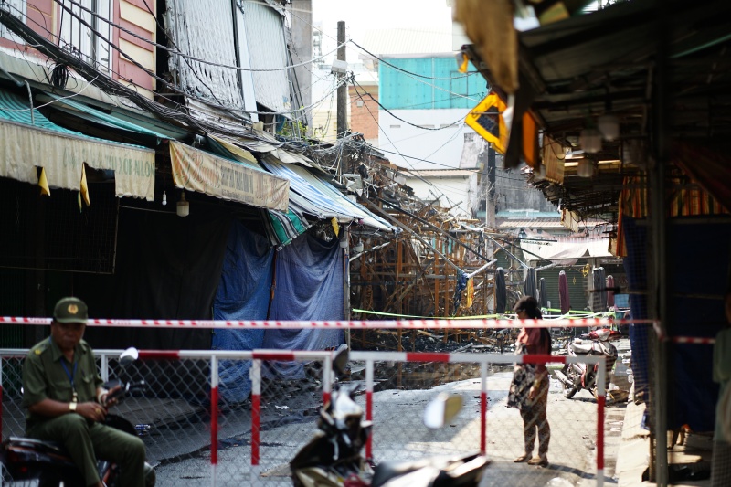 Sáng cùng ngày, Công an phường Bình Đông phối hợp các phòng nghiệp vụ Công an TP.HCM phong tỏa khu vực, tiến hành khám nghiệm hiện trường, điều tra nguyên nhân vụ cháy và thống kê thiệt hại về người, tài sản. Khu vực xảy ra cháy nằm trong chợ Nhị Thiên Đường, cách cầu Nhị Thiên Đường khoảng 300m.
