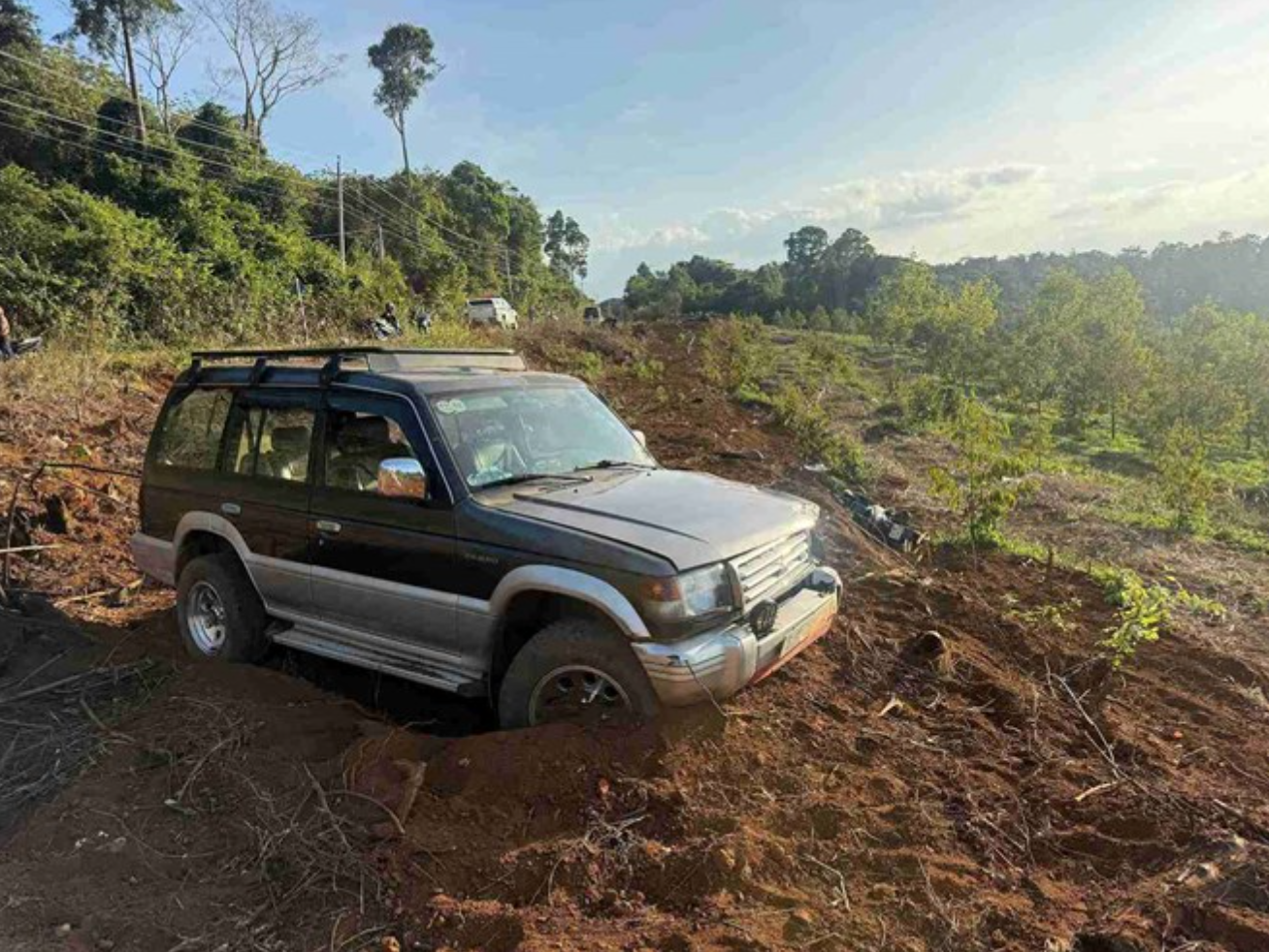 Chiếc ô tô lao xuống taluy bên trái. (Ảnh: Pháp luật TP.HCM)