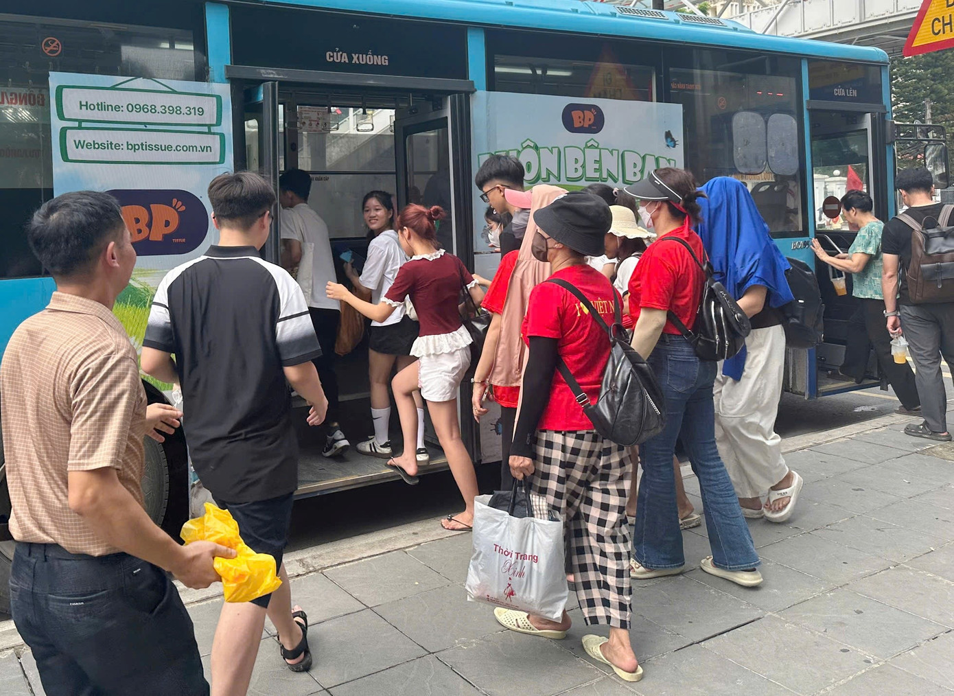 Sau một thời gian dài vắng khách, giảm sản lượng do nhiều nguyên nhân khách quan, trong ngày đầu nghỉ lễ dịp Quốc khánh 2/9 (sáng và trưa 30/8) xe buýt Hà Nội có rất đông khách xếp hàng đợi lên xe. Hình ảnh hiếm gặp trong nhiều năm trở lại đây.