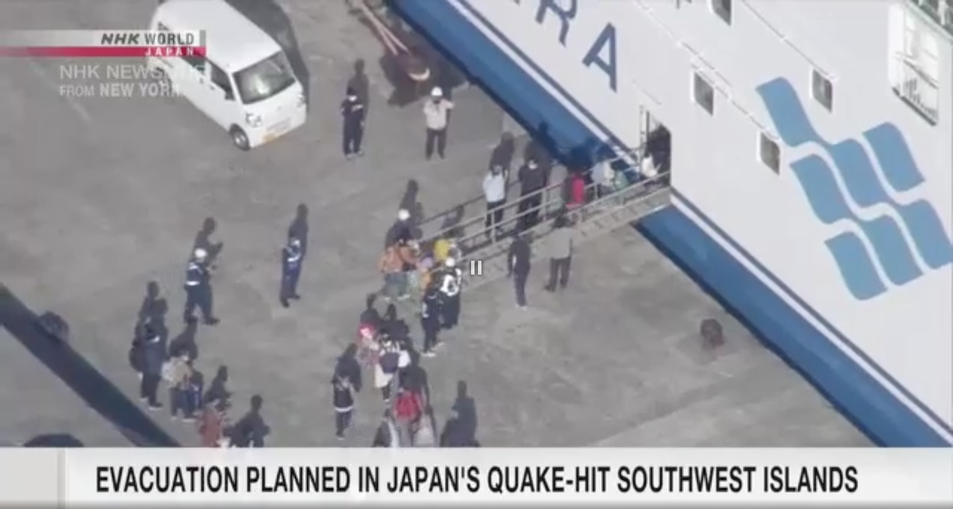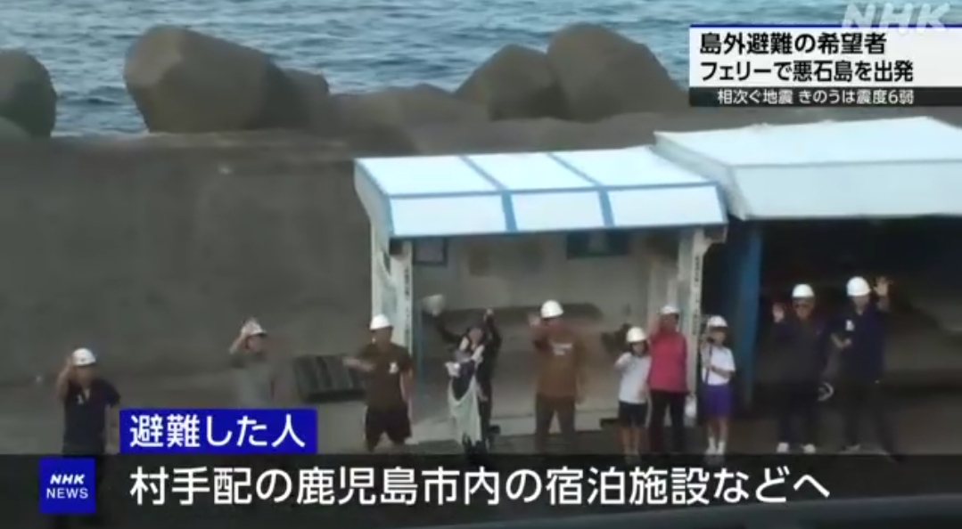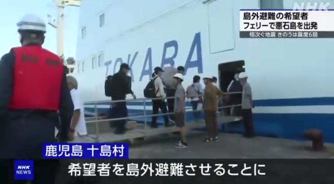 Ngày 4/7, khoảng một chục người dân đã sơ tán khỏi một hòn đảo xa xôi ở phía tây nam Nhật Bản, một ngày sau trận động đất mạnh có cường độ 5,5 độ richter xảy ra ở khu vực này sau khoảng hai tuần xảy ra các trận động đất nhỏ hơn.