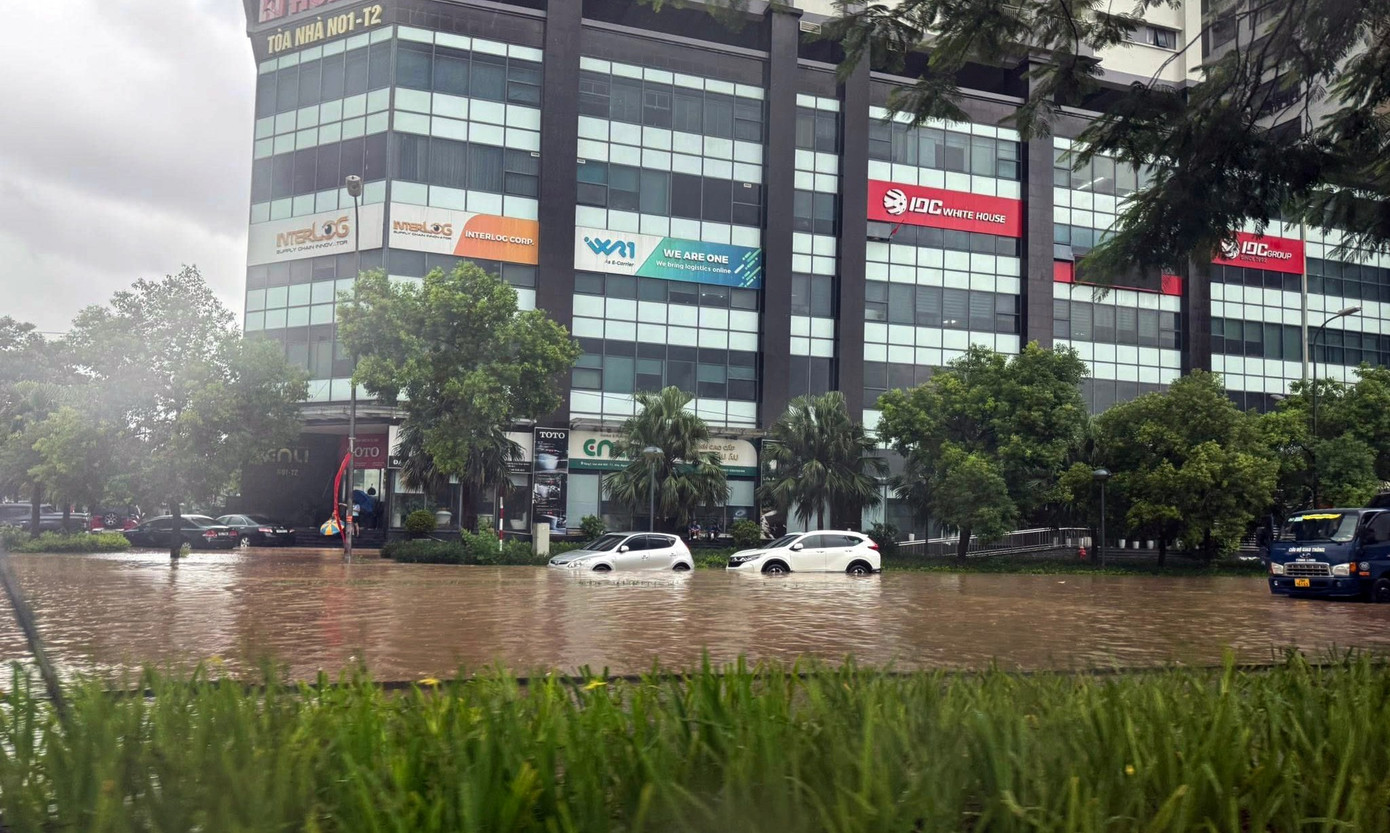 Tại khu đô thị Nam Thăng Long (Ciputra) - khu đô thị nhà giàu cũng bị ngập nặng sau trận mưa kéo dài. Ảnh: MXH.