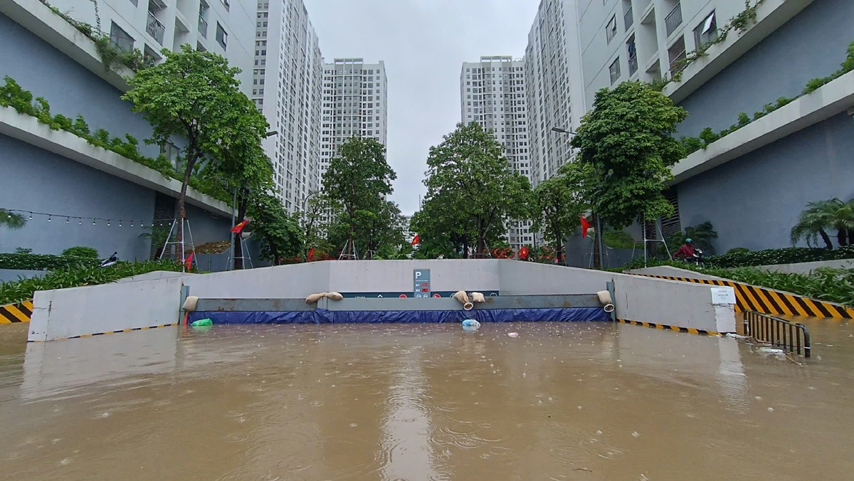 Mưa lớn liên tục do hoàn lưu bão Kajiki khiến nhiều khu chung cư ở Hà Nội "chìm trong biển nước", các tuyến đường nội khu bị cô lập. Thậm chí, có chung cư phải dựng đập, rào chắn để ngăn không cho nước tràn xuống hầm...