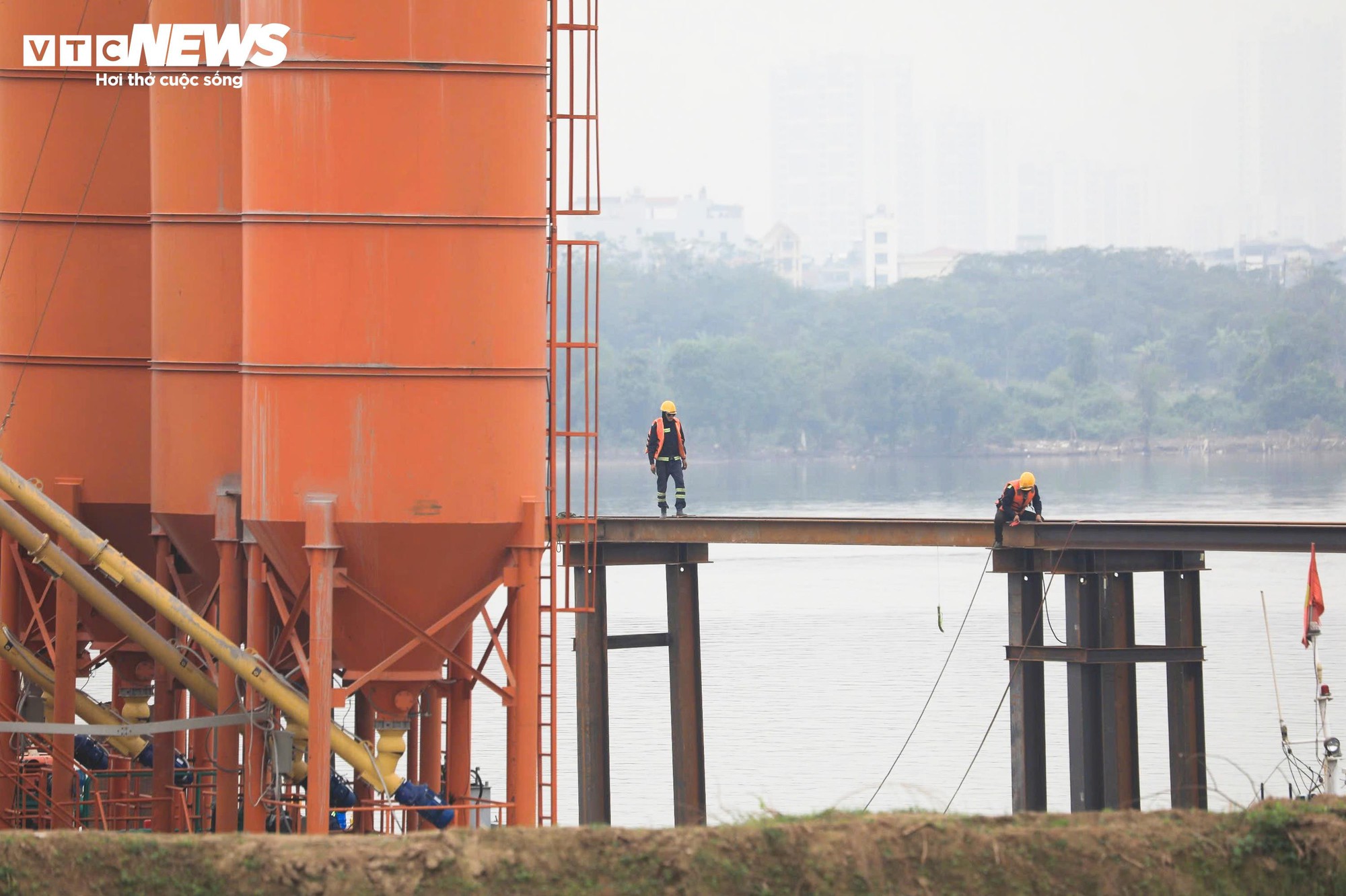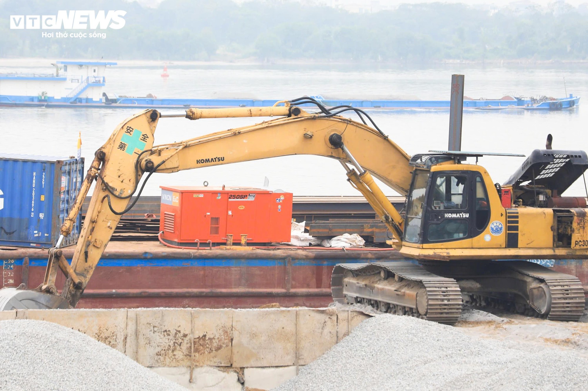 Theo ghi nhận của PV Báo Điện tử VTC News, sau khoảng 4 tháng khởi công, trên công trường cầu Ngọc Hồi nhà thầu đã huy động các loại máy móc, xà lan, tàu, vật liệu xây dựng... tập kết phục vụ công tác thi công.