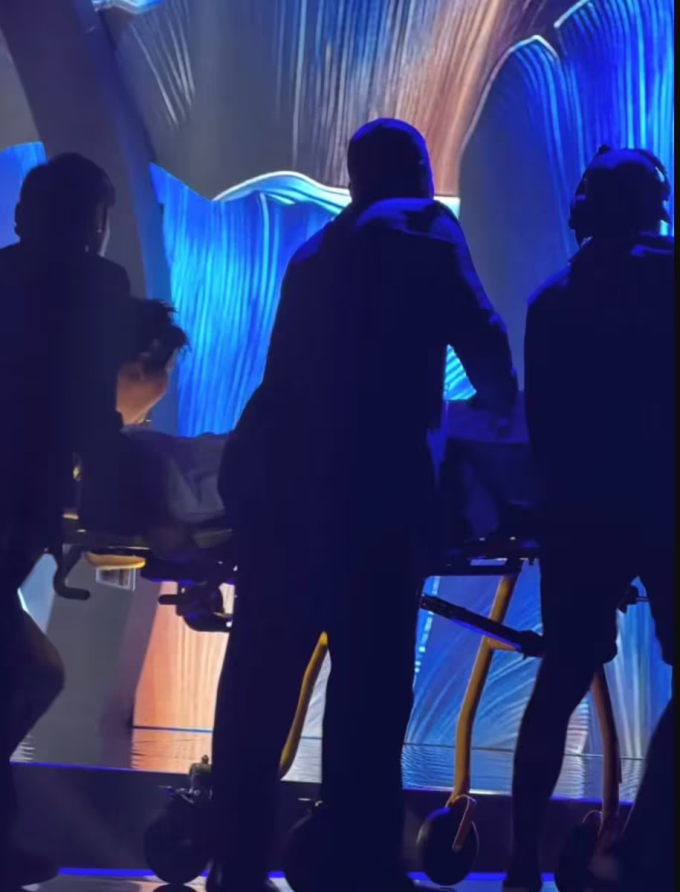 Hoa hậu Jamaica Gabrielle Henry được khiêng đi cấp cứu.
