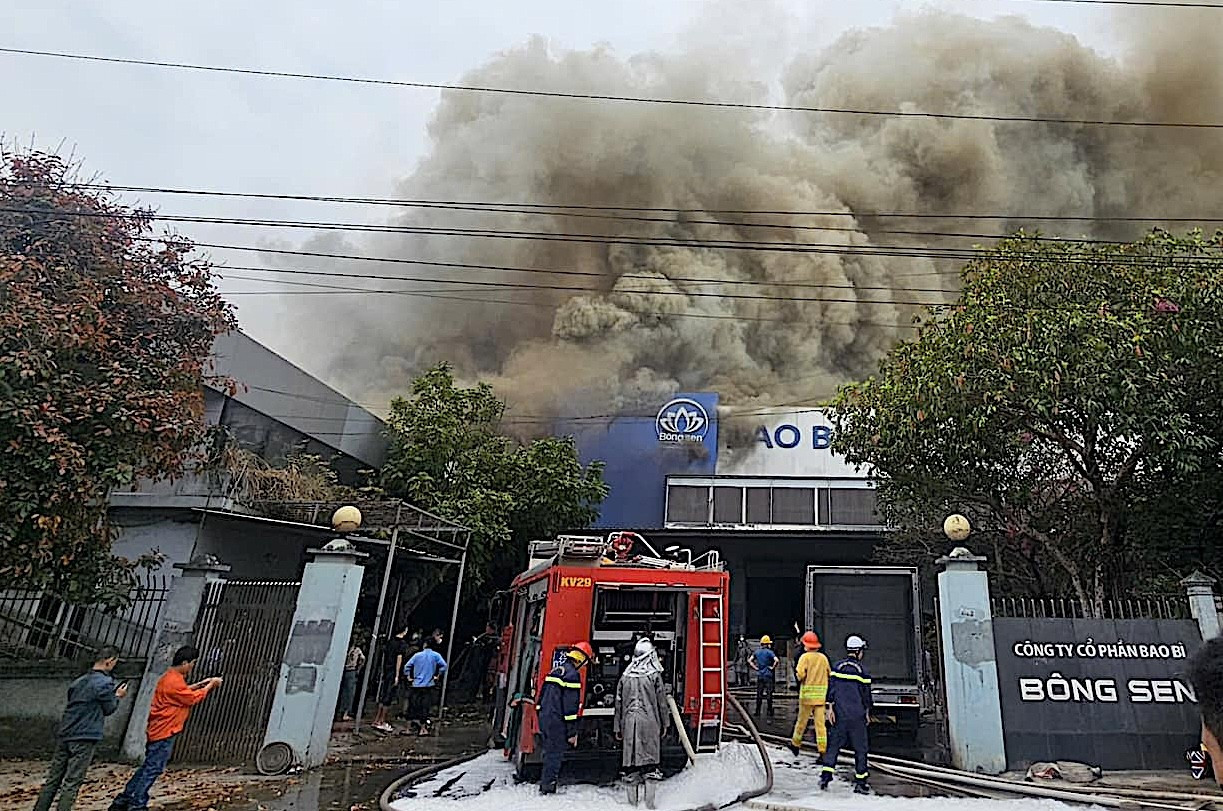 Hỏa hoạn tại Công ty bao bì Bông Sen, khói đen cuồn cuộn