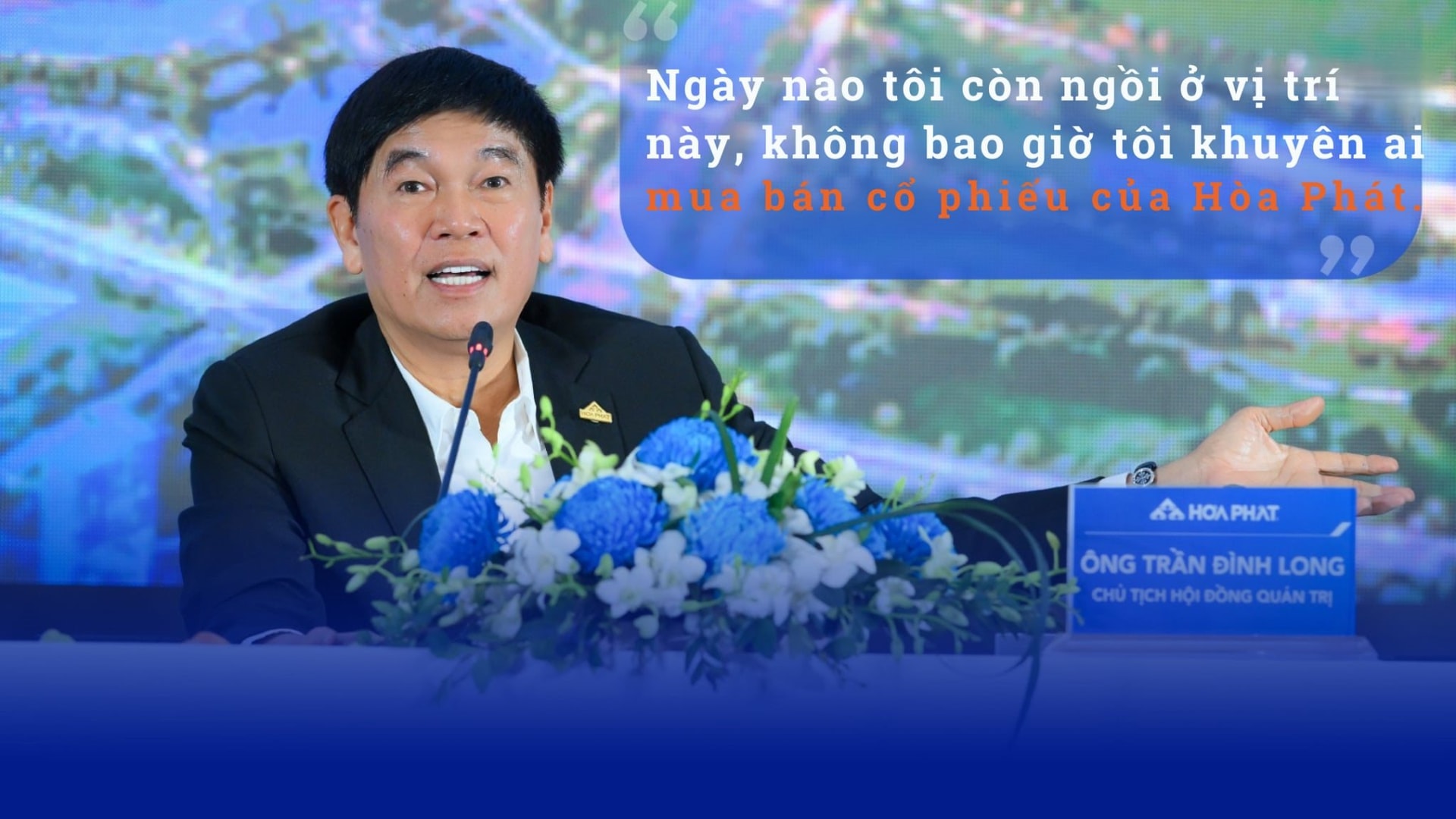 Đặc biệt, khi được hỏi về biến động giá cổ phiếu HPG, Chủ tịch Trần Đình Long đã thẳng thắn từ chối đưa ra lời khuyên mua bán để đảm bảo tính khách quan. Theo ông, việc tư vấn giá cổ phiếu rất dễ dẫn đến những hiểu lầm không đáng có về việc "lùa gà" hay "bán chui". Ông tuyên bố: “Ngày nào tôi còn ngồi ở vị trí này, không bao giờ tôi khuyên ai mua bán cổ phiếu của Hòa Phát”.