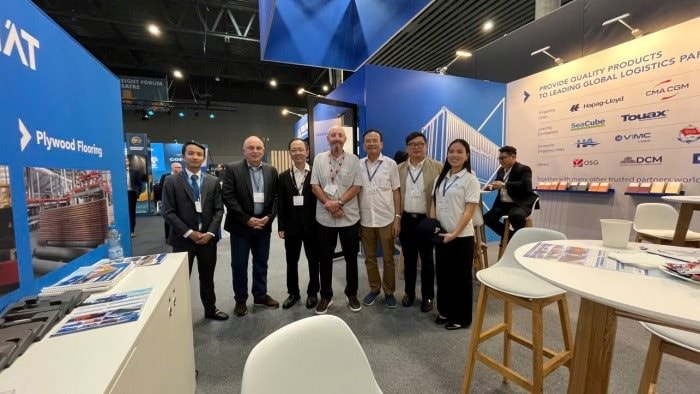 Gian hàng của doanh nghiệp Việt Nam tại vị trí L40 thu hút sự quan tâm của nhiều đối tác quốc tế, trong đó có các hãng vận tải lớn như CMA CGM, Hapag-Lloyd, Seacube, Touax, Textainer, Triton, Maersk, HMM…