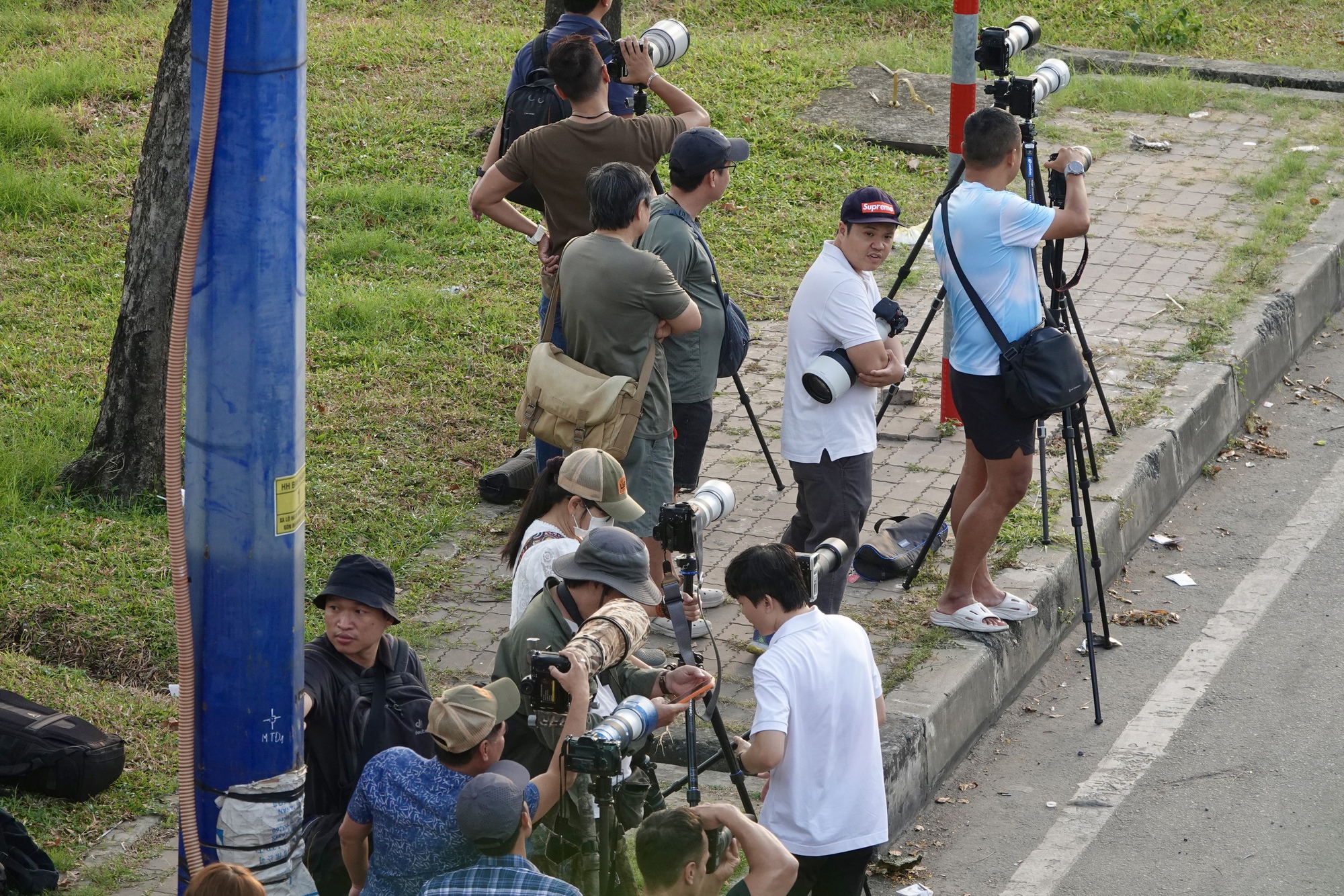 Dù đã xuất hiện từ những ngày trước, sức hút của hiện tượng này vẫn chưa hạ nhiệt. Ngay từ cuối giờ chiều, nhiều người đã có mặt để chọn vị trí đẹp, dựng sẵn máy ảnh và điện thoại, kiên nhẫn chờ thời khắc mặt trời “chạm” vào chân cầu.