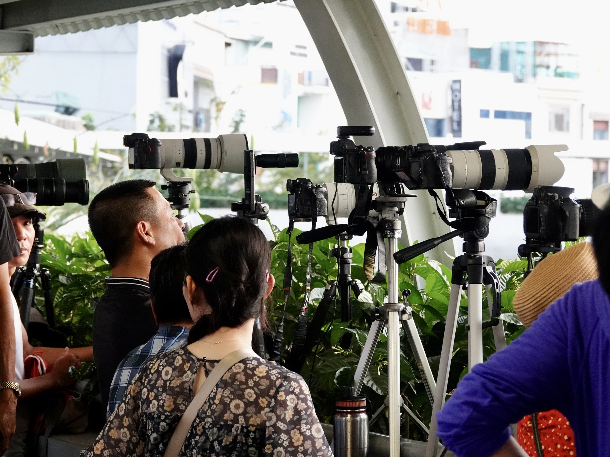 Nhiều người cho biết dù phải đứng đợi khá lâu, nhưng khi chứng kiến khoảnh khắc mặt trời đỏ rực nằm gọn sau nhịp cầu, mọi sự chờ đợi đều xứng đáng