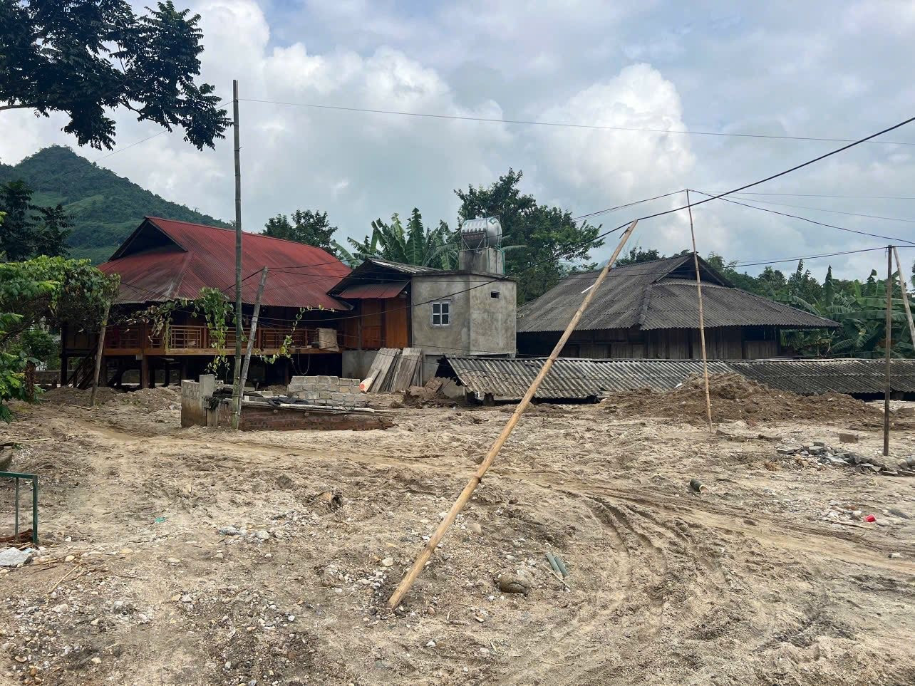 Lượng lớn cát vàng tràn vào thôn Làng Chút, xã Văn Bàn sau bão lũ.