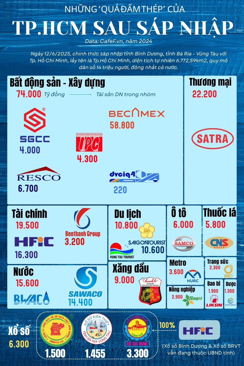 UBND Tp.Hồ Chí Minh sau sáp nhập cũng nắm trong tay hơn 20 ‘quả đấm thép’ là các doanh nghiệp lớn đầu ngành trải rộng trên rất nhiều lĩnh vực với tổng tài sản hơn 180.000 tỷ đồng.