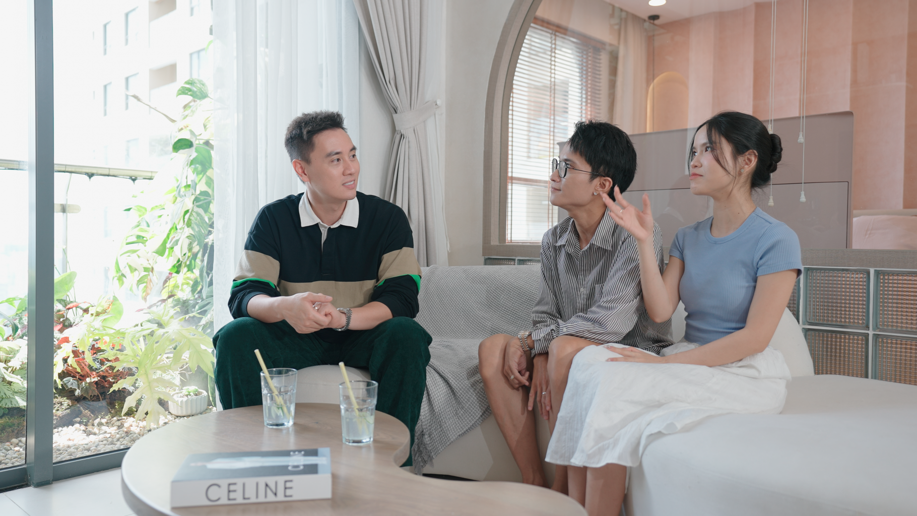 "Thực ra tụi mình gần như không ra ban công để ngồi chill hay nhìn ngắm cảnh vật nên chọn thiết kế thành 1 khu vườn nhiệt đới như vậy, cốt để thoả mãn phần nhìn là đủ rồi", Tizi chia sẻ.