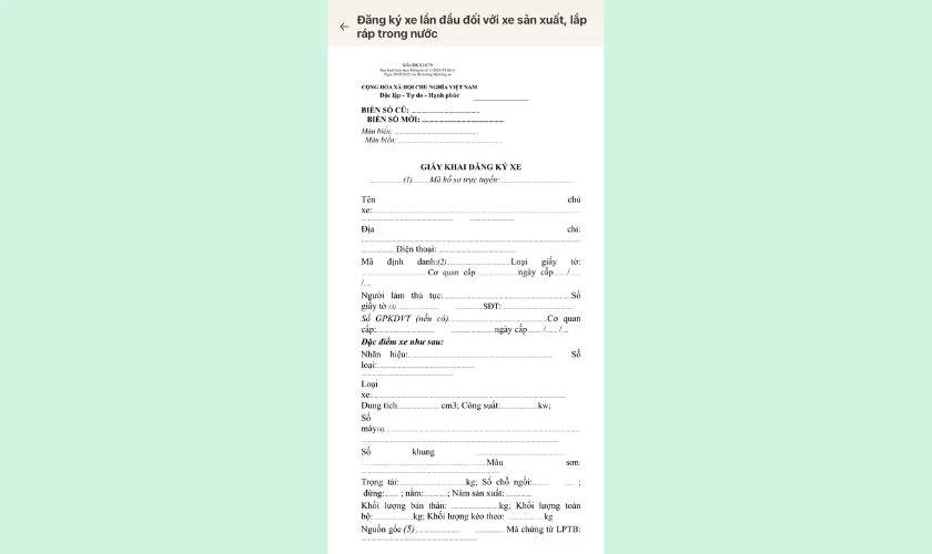 Bước 3: Điền đầy đủ thông tin cá nhân và thông tin xe cần đăng ký.