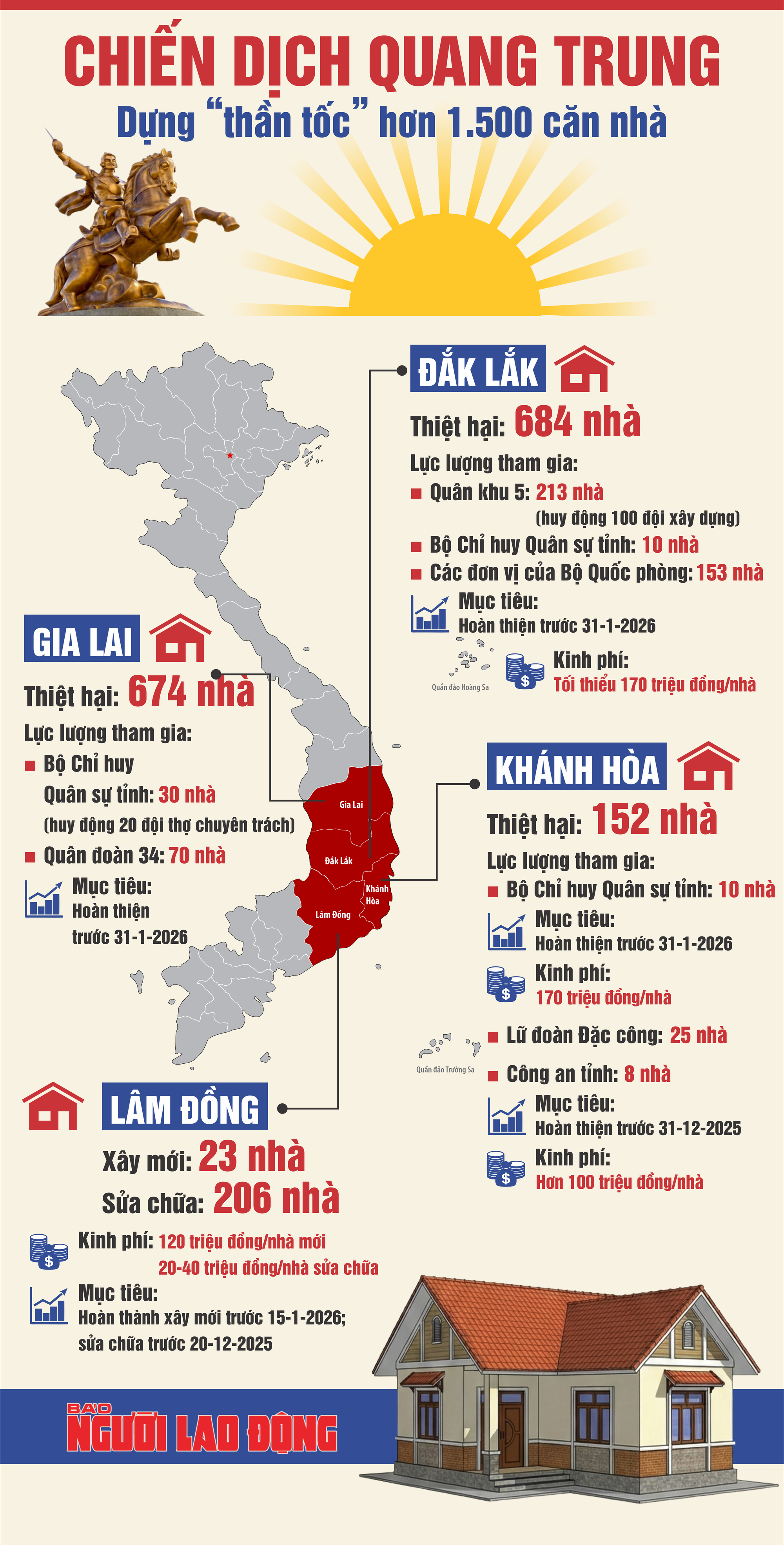 [Infographic] - Chiến dịch Quang Trung: Dựng “thần tốc” hơn 1.500 mái nhà cho người dân sau lũ dữ