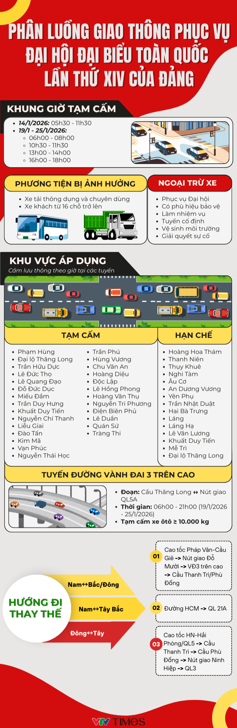 Infographic: Phân luồng giao thông phục vụ Đại hội XIV của Đảng