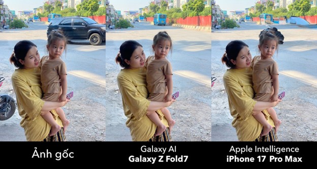Sau khi chụp, quá trình hậu kỳ trên Galaxy Z Fold7 được nâng cấp nhờ màn hình lớn và công cụ xử lý ảnh bằng AI. Người dùng có thể mở song song ảnh gốc và bản chỉnh sửa, sử dụng Generative Edit để xóa vật thể, tái tạo nền hoặc thay đổi bố cục một cách hài hòa. Công cụ Clean Up trên iPhone dù có mục tiêu tương tự nhưng vẫn hạn chế rõ rệt: thuật toán đôi khi làm biến dạng vùng ảnh, xóa không “sạch”, hoặc tạo nền thiếu tự nhiên.