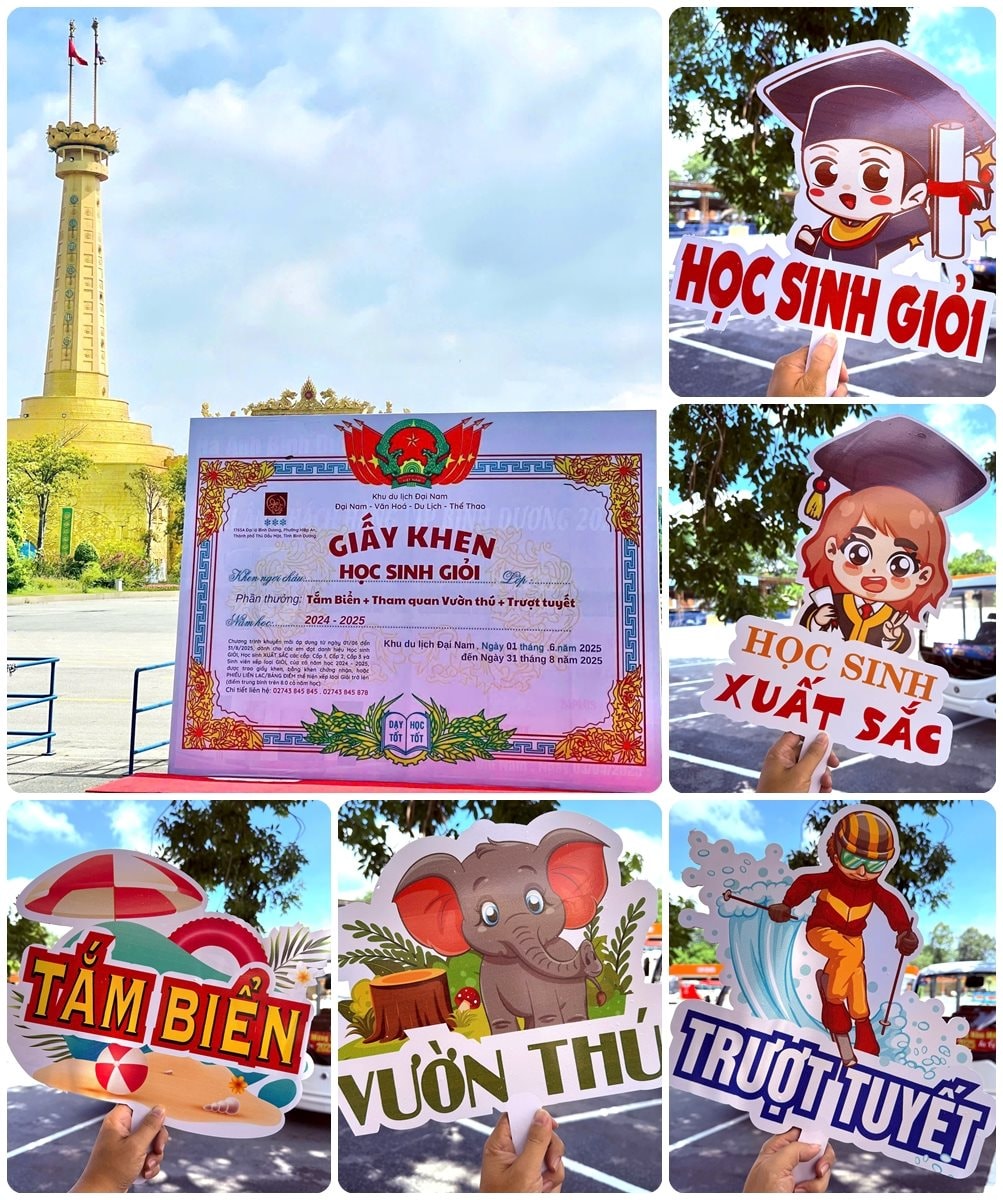 Chỉ cần mang giấy khen bản gốc, các em học sinh, sinh viên sẽ được nhận vé tham quan miễn phí tại Khu du lịch Đại Nam, bao gồm tắm biển, tham quan Vườn thú mở, trò chơi Trượt Tuyết tại Khu trò chơi.
