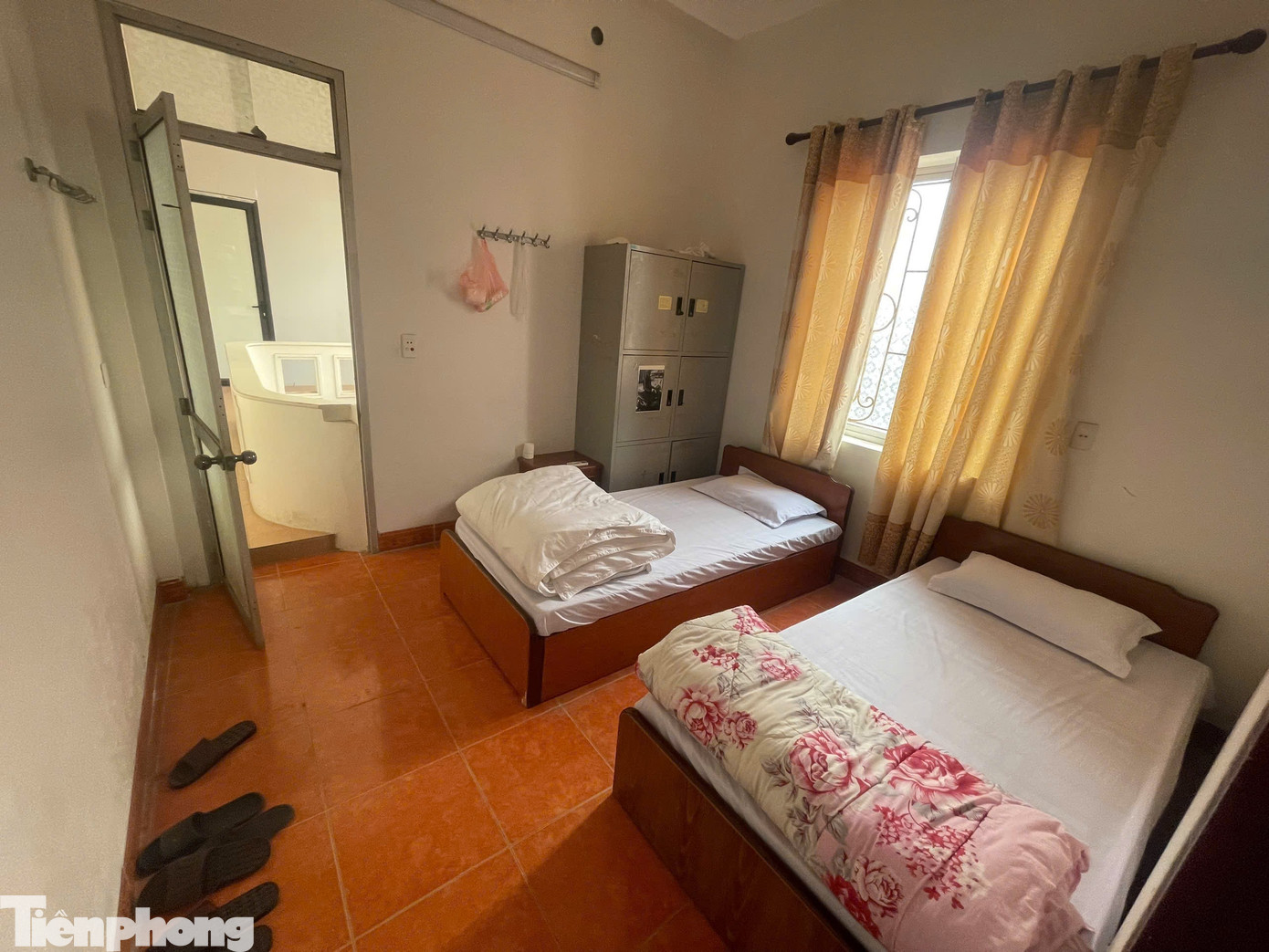 Cụ thể, tại khách sạn gắn mác "bình dân" này, một căn phòng nhỏ chưa đầy 5m2 trên tầng 2 với hai giường đơn sơ, không có nhà vệ sinh riêng, khách phải sử dụng nhà vệ sinh công cộng ở tầng 1, lối vào phòng nhỏ bằng một hàng gạch lát nền, bên cạnh phòng nghỉ là khu giặt đồ nhưng được người chủ cho thuê với giá 1 triệu đồng/đêm.