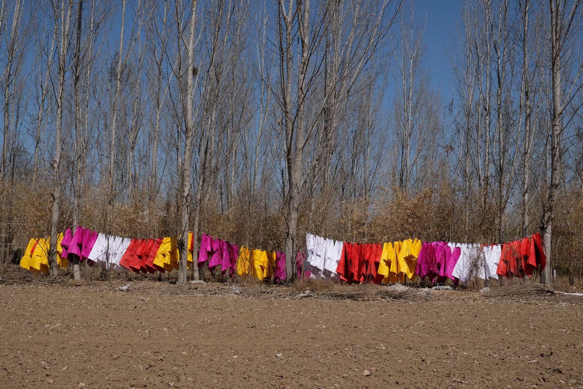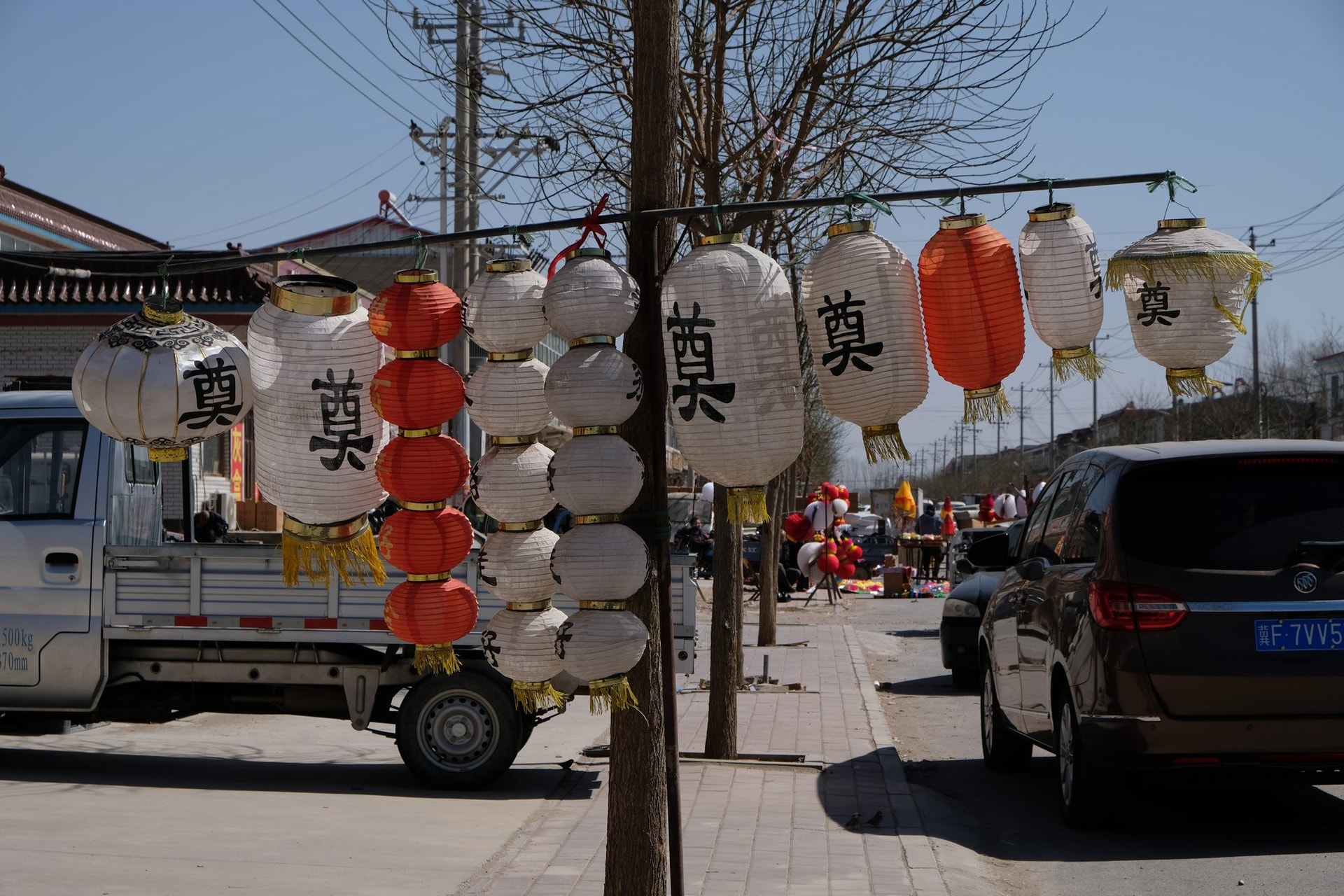 Con đường dẫn vào làng lợp kín những "phướn hồn" dùng để dẫn lối linh hồn sang thế giới bên kia; những hình nhân nam nữ bằng nhựa trong trang phục truyền thống, định sẵn sẽ trở thành người hầu hoặc bạn đồng hành cho người quá cố; bò và ngựa bằng giấy để cày cấy; và những con hạc biểu tượng cho sự trường thọ.