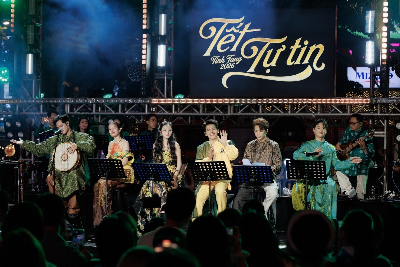 Ngay từ sớm, khu vực diễn ra sự kiện đã thu hút hàng ngàn khán giả. Những tràng pháo tay, tiếng reo hò và giây phút tất cả cùng hòa giọng theo từng ca khúc đã mang đến không khí lễ hội rộn ràng, vẽ nên một bức tranh ngày Tết sống động ngay giữa lòng thành phố.