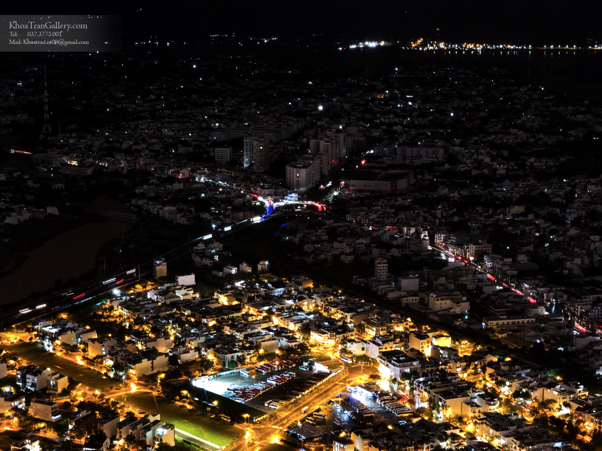Ban đêm, nhìn toàn cảnh Nha Trang từ trên cao trong những ngày mưa lũ lịch sử hiện lên như hai thế giới song song. Một nửa thành phố vẫn sáng rực, dòng xe đỏ trắng nối nhau trên những con đường quen thuộc, những tòa nhà vẫn sáng đèn điện.
